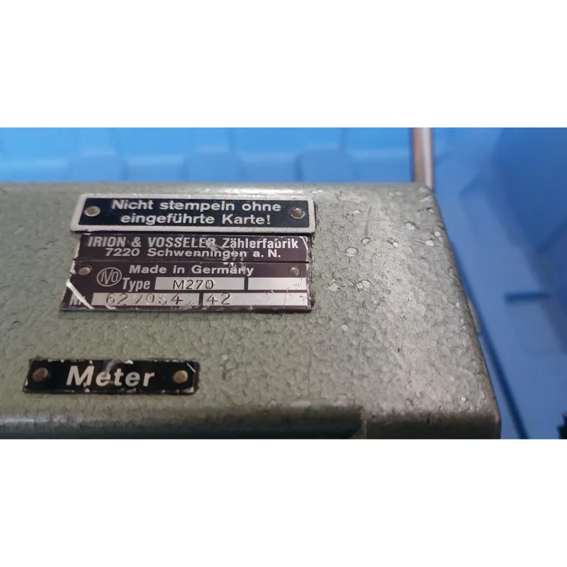 یه دستگاه کوچک آلمانی گویا کار متر کردن روی دستگاه پارچه بافی یا کارخانه کاغذ یا غیره رو انجام میداده و با تعویض شیفت کاری هر کارگر دستگاه مقدار متراژ کارکرد خودش رو با قرار دادن کارتی زیر شکاف همین دستگاه و کشیدن اهرم کناری عدد روی متر حک میشده روی کارت مربوطه و در واقع سندی برای کارکردش در ادن شیفت بوده. بعد از کشیدن اهرم همزمان بعد از حک یا چاپ متراژ عددها صفر میشده واسه شیفت بعدی. کلا کار جالب و کمیابی هست.
