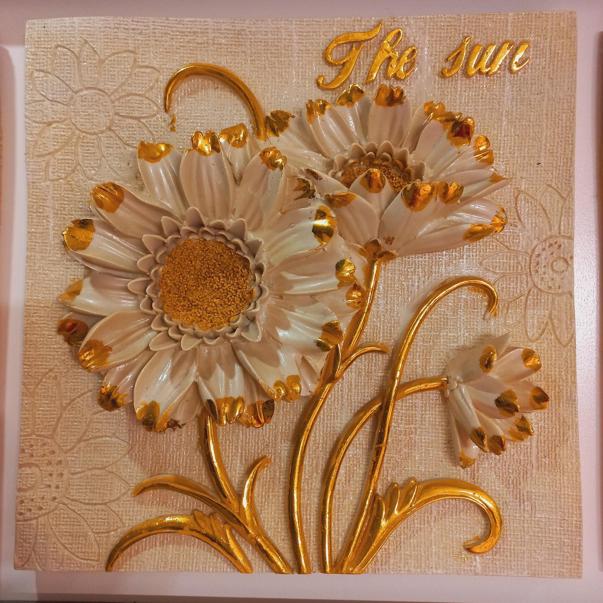 تابلو سایز بزرگ اندازه یک و بیست در 80 هست گل آفتابگردان برجسته می باشد.