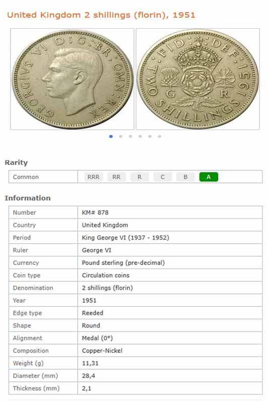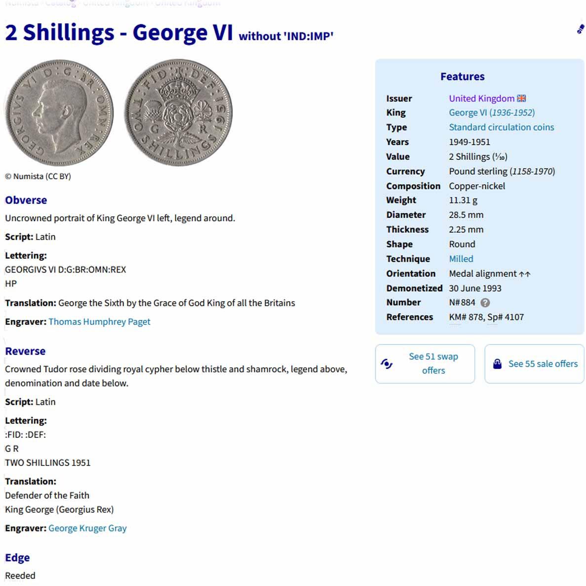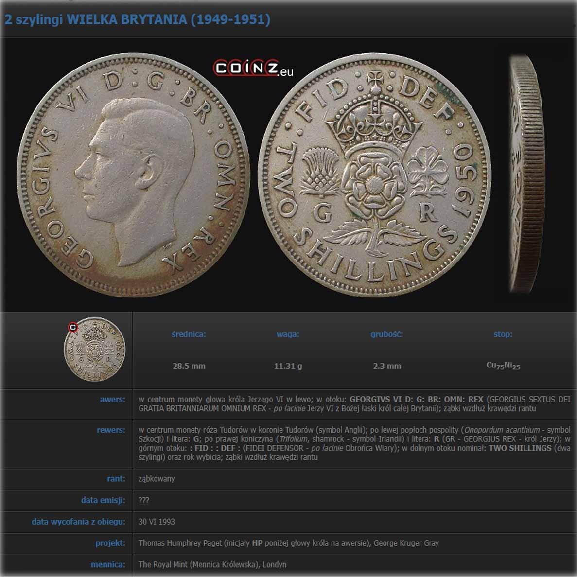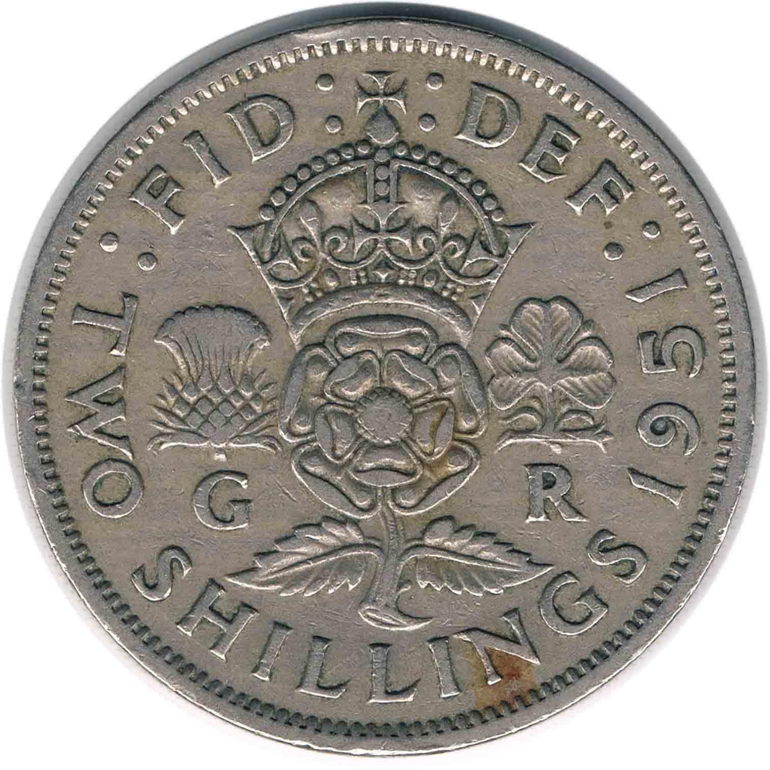 سکه 2 شیلینگ بریتانیا 1951 جرج ششم (کمیاب)