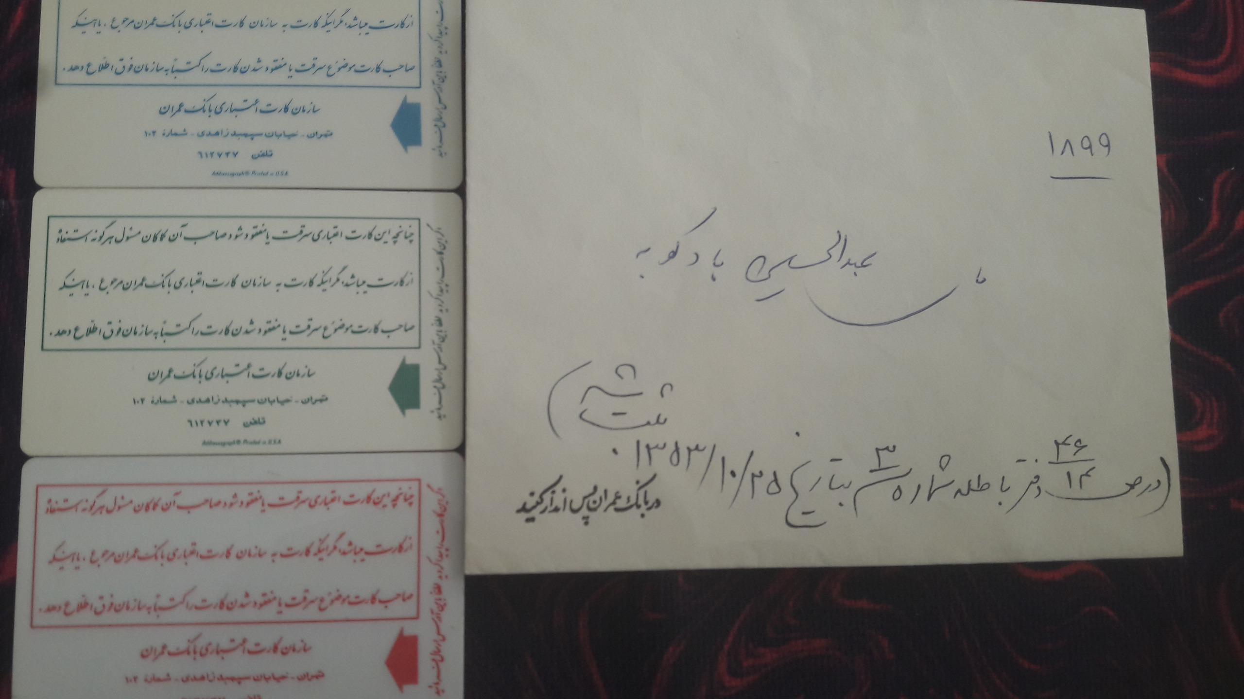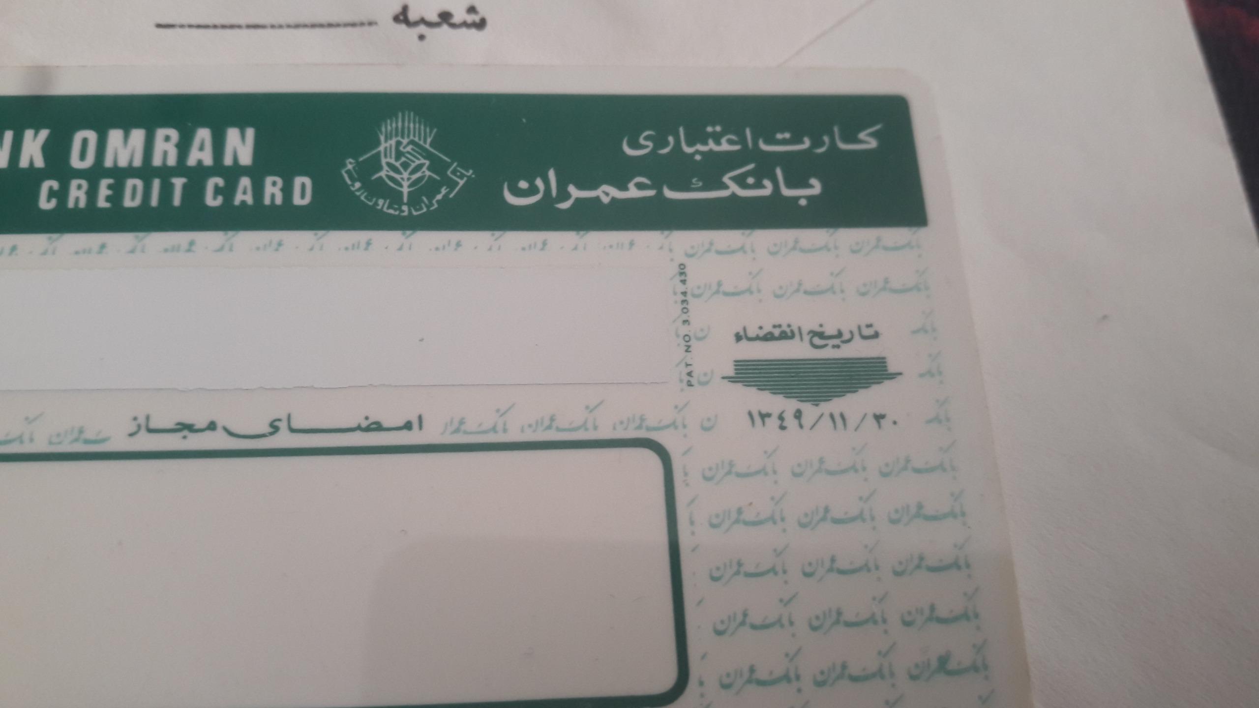 توجه:3عدد کارت اعتباری مصرف نشده بانک عمران ساخت امریکا (کارت آبی 1347-کارت قرمز1348وکارت سبز1349)-این کارتها در زمان خود مانند عابر بانک امروزی کاربری داشته که جز اولین کارتهای اعتباری در ایران میباشد.که در نوع خود بسیار کمیاب هستند.قیمت برای 3عدد است.(کارت برنگ آبی خیلی کمیاب تر است)با پاکت بانک عمران