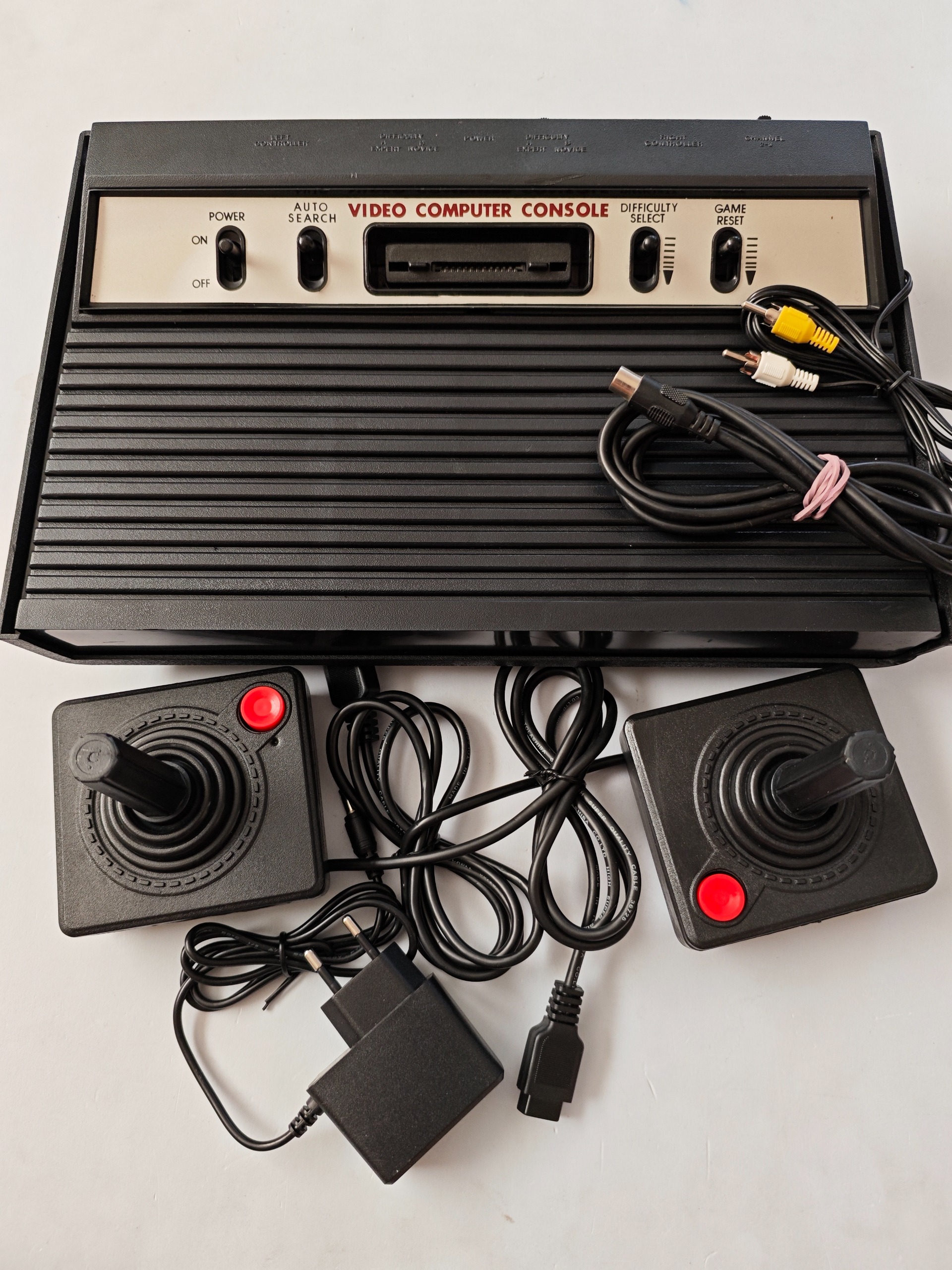 آتاری حافظه دار قدیمی سالم و تست شده بهمراه یک عدد آداپتور ، دو عدد دسته گوشکوبی، همچنین دارای بهترین بازی های آتاری در حافظه منجمله هواپیما ریورراید اصلی، زیردریایی، ماشین فصلی، دزد و پلیس و....