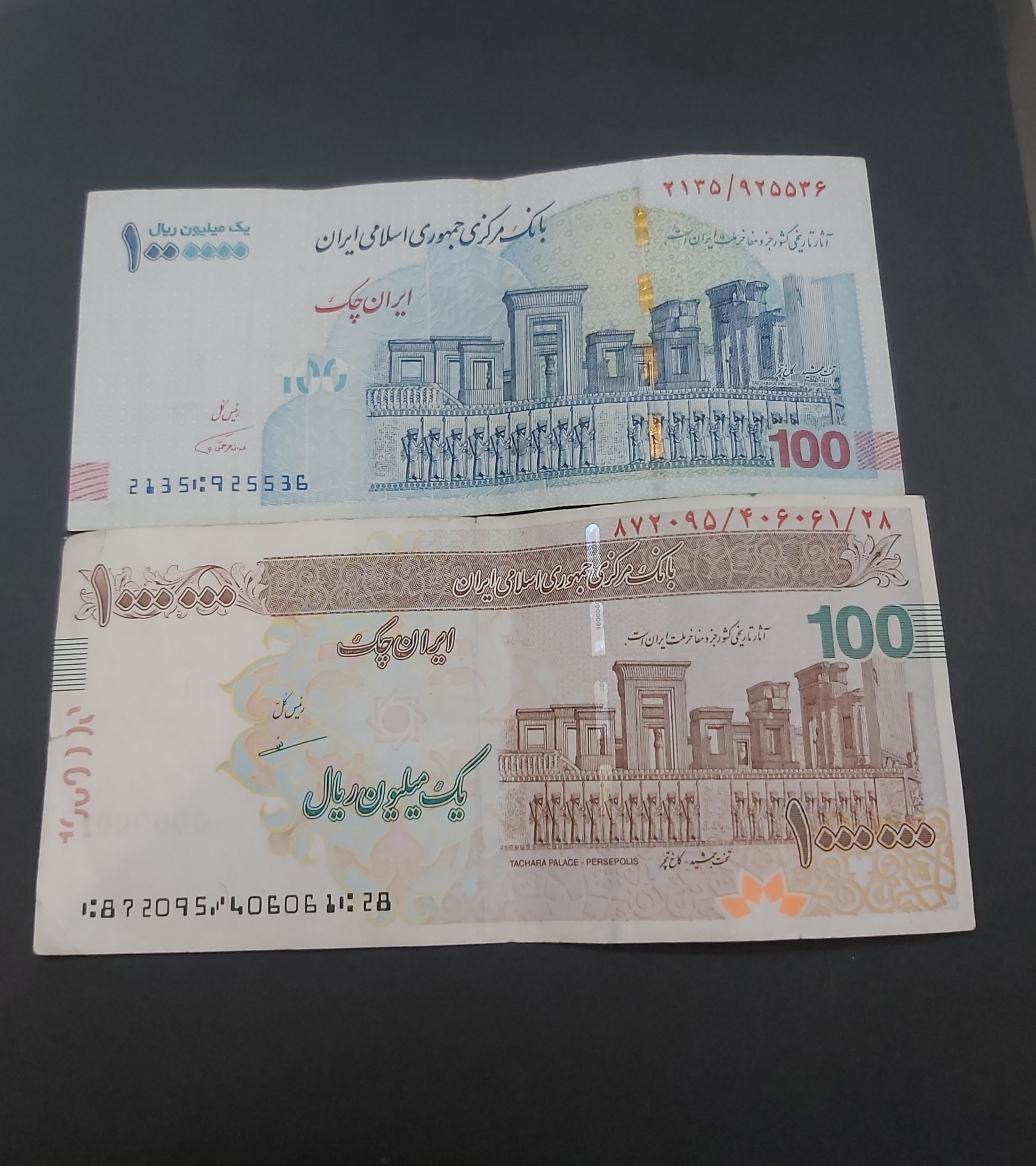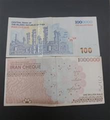 تراول ایران چک 1 میلیون ریالی با تصویر تخت جمشید کاخ تچر.. پالایشگاه گازی پارس جنوبی...