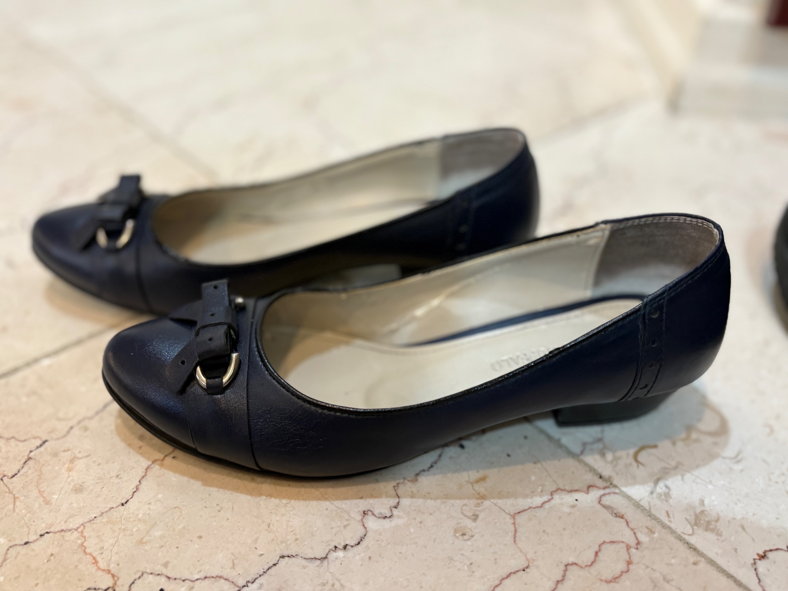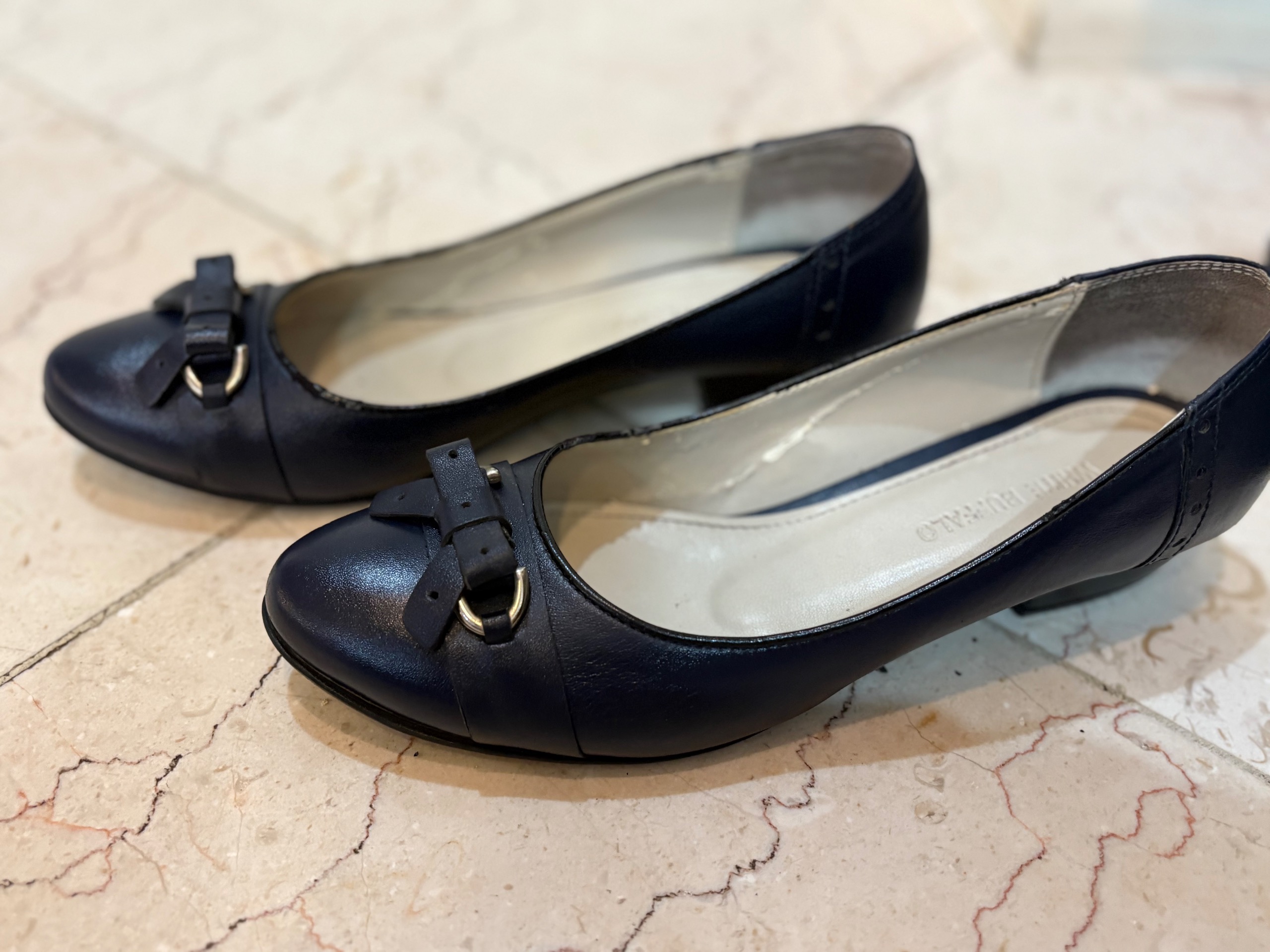 کفش طبی پاشنه دار چرم زنانه سورمه ای
