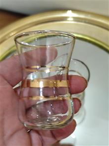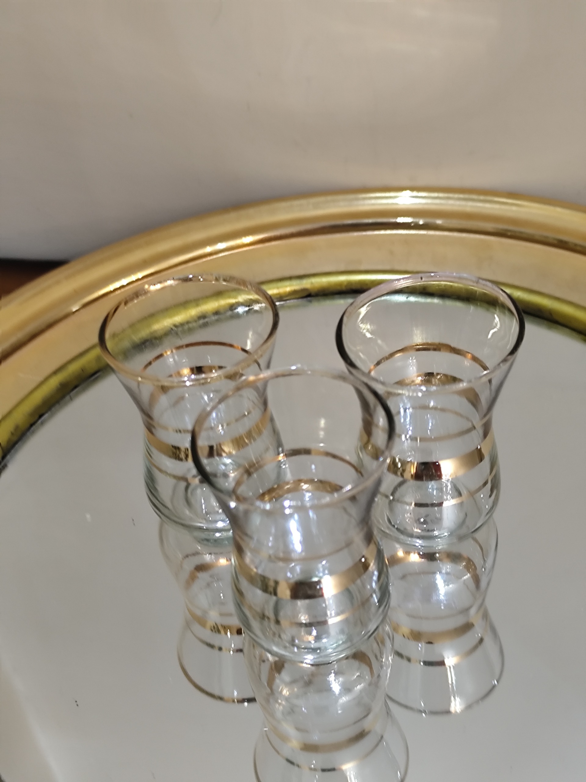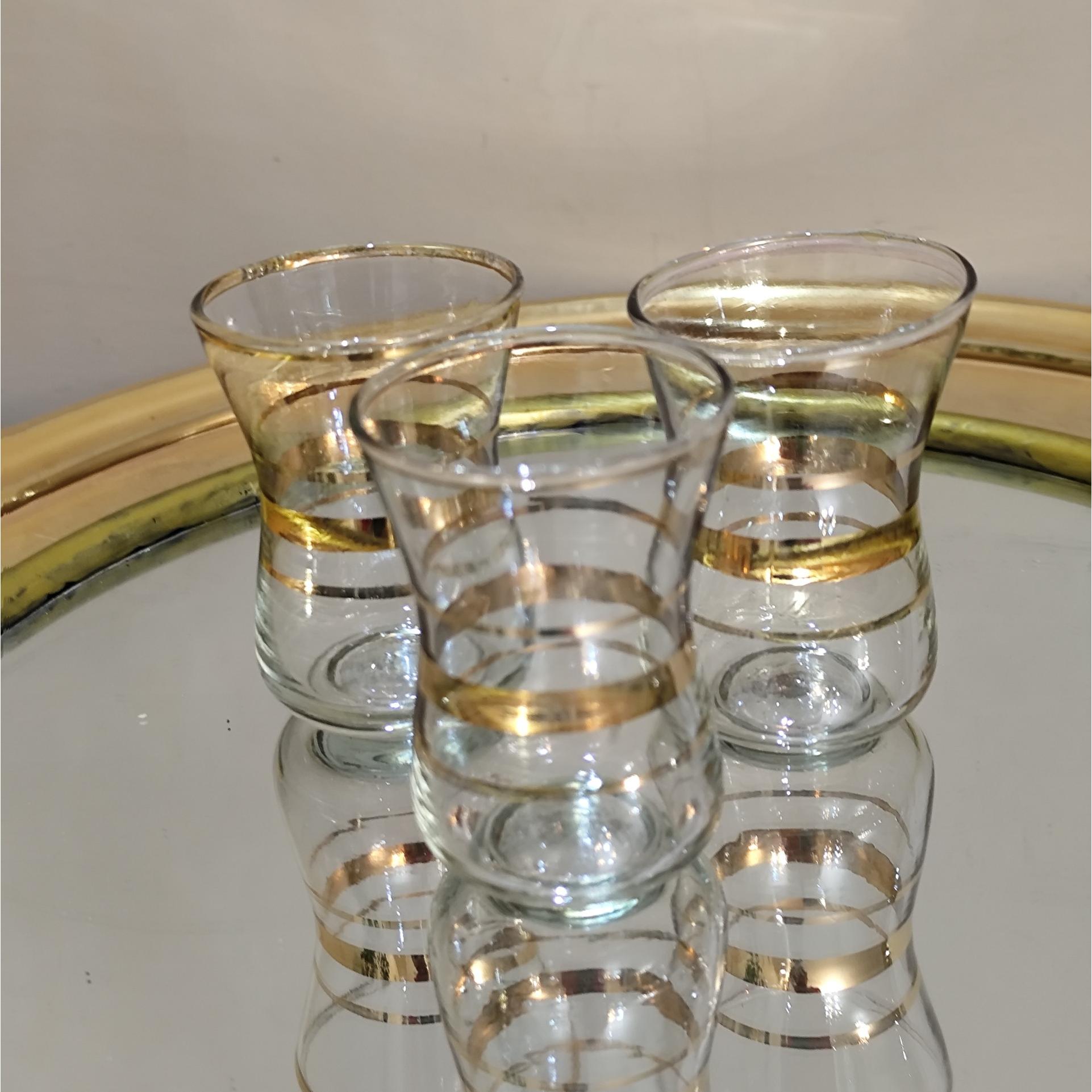 سه عدد استکان کمرباریک طلاکوب قدیمی سایز کوچک تمیز و سلامت