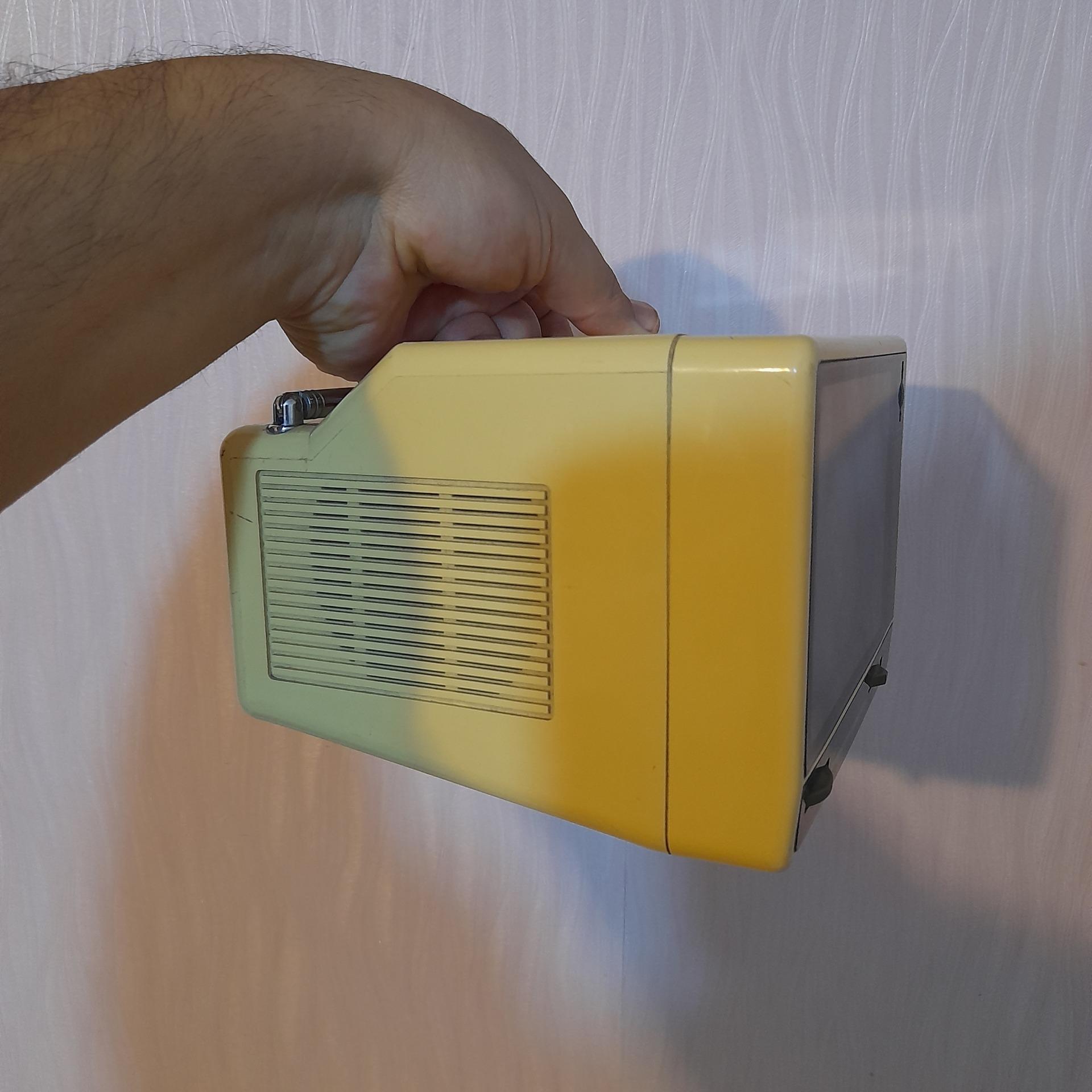 رادیو وتلویزیون سایز کوچیک ابیاد 16 در 12 زدم برق تلویزیونش برفک میاد و رادیوش نگرفت موج بخاطر موج هاش خارجی هستش .کلگی آنتن نداره .مدل کمیاب و کلکسیونی خوشرنگو زیبا