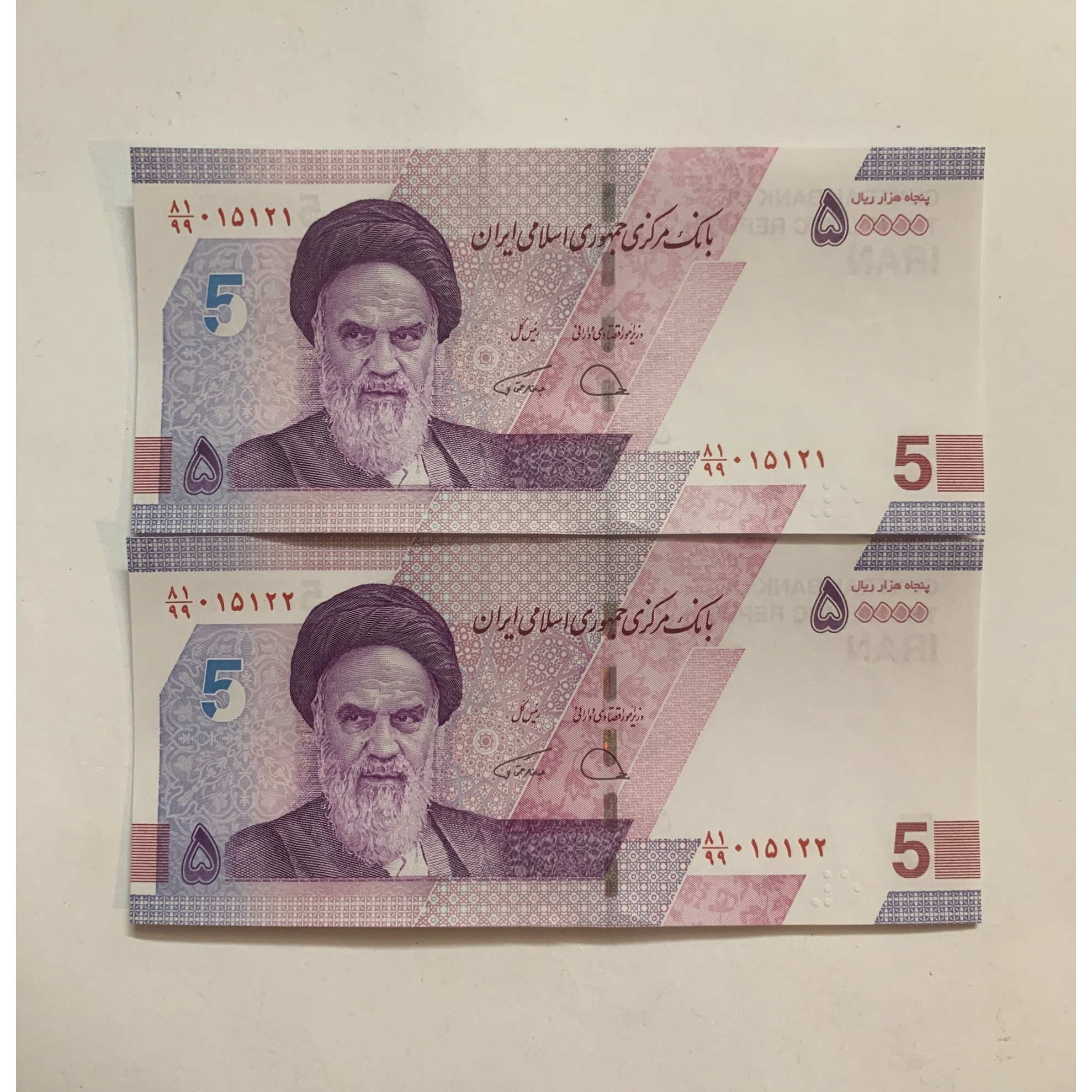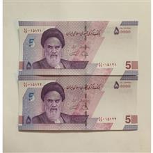 جفت اسکناس بانکی 5000 تومانی طرح جدید با شماره جایگزین