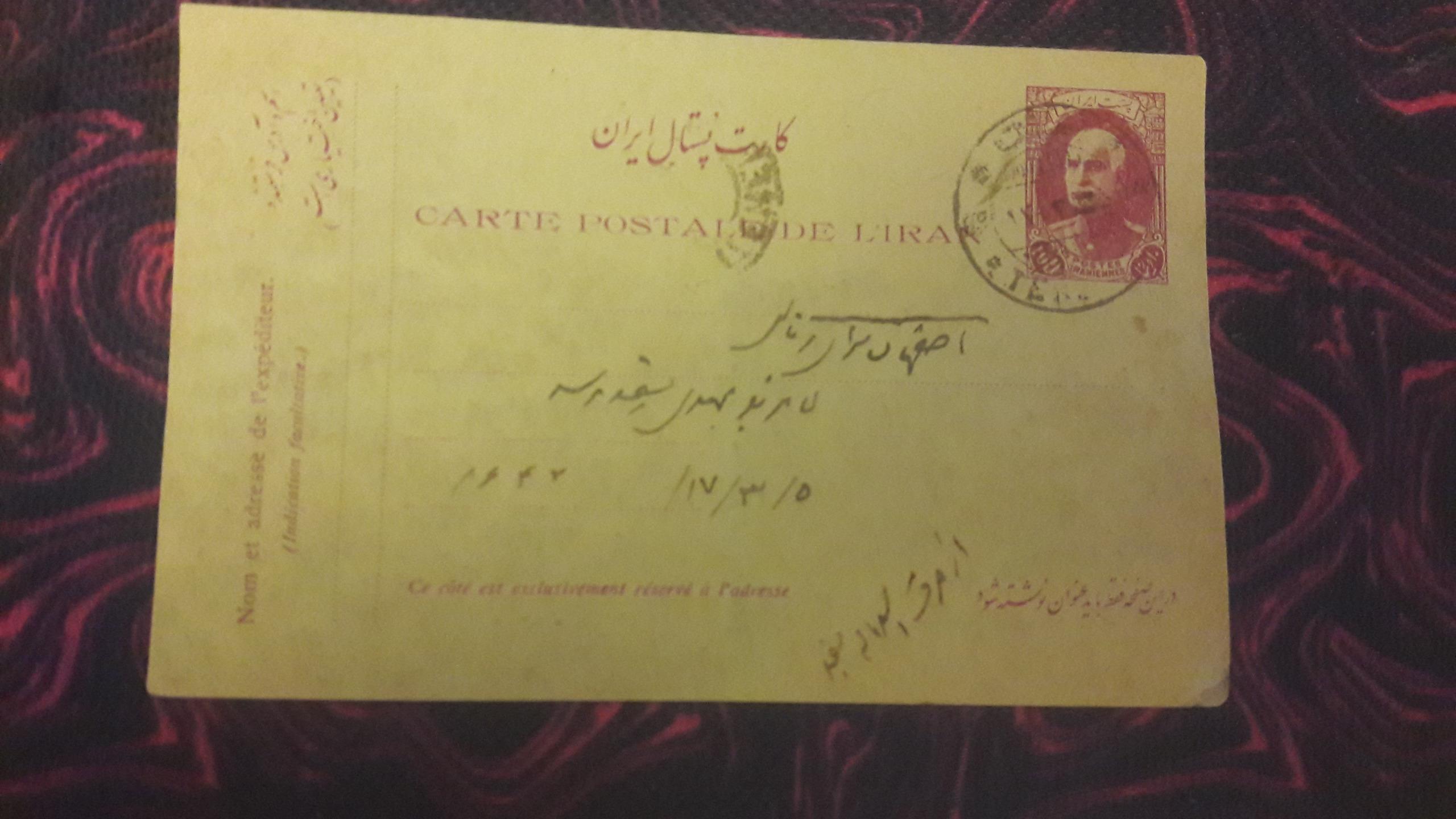 توجه:کارت پستی با تمبر10دینار رضا شاهی(مصرف شده)