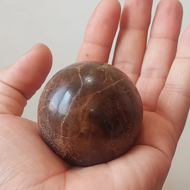گوی دست تراش سنگ آراگونیت عسلی 55میلیمتری