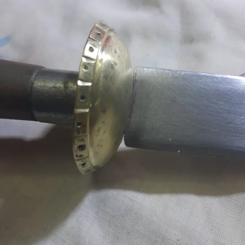 یک قاب برنجی محافظ دست هم روش سوار شده با ورق قطور .