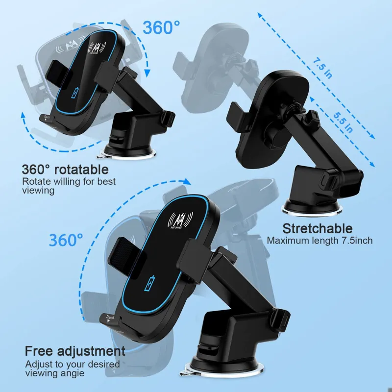 شارژر ماشین بیسیم KKM، پایه شارژر بیسیم ماشین با شارژ سریع 15 واتی Qi، نگهدارنده تلفن داشبورد هوا دریچه هوا سازگار با iPhone 12/12 Pro/12 Pro Max/11/11 Pro Max/X/XS Max/8 Plus