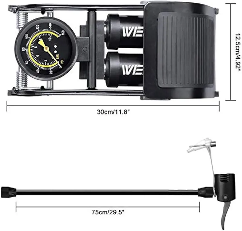پمپ سریعتر دو سیلندر: پمپ دوچرخه دو بشکه از فلز سنگین با کیفیت ساخته شده است که آن را محکم، بادوام و ضد خوردگی می کند. و از دو سیلندر تقویت شده استفاده می کند، فشار هوا بیشتر، نشتی کمتر، می تواند به سرعت پمپاژ کند. علاوه بر این، فنر از فولاد ساخته شده است