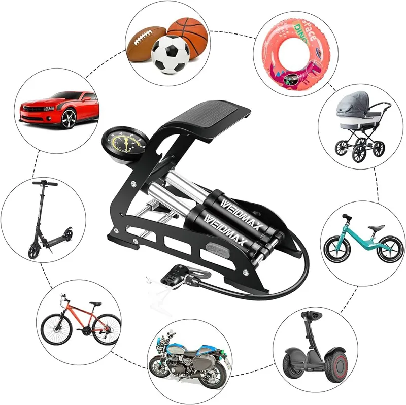 کاربردهای گسترده: این پمپ لاستیک دوچرخه دارای سوپاپ Presta & Schrader است، بدون تبدیل، صرفه جویی در زمان و تلاش، که می تواند برای کالسکه نوزاد پر از گاز، صندلی چرخدار، تهویه دوچرخه، دوچرخه کوهستان، موتور سیکلت گازدار، وسایل نقلیه الکتریکی، توپ استفاده شود.