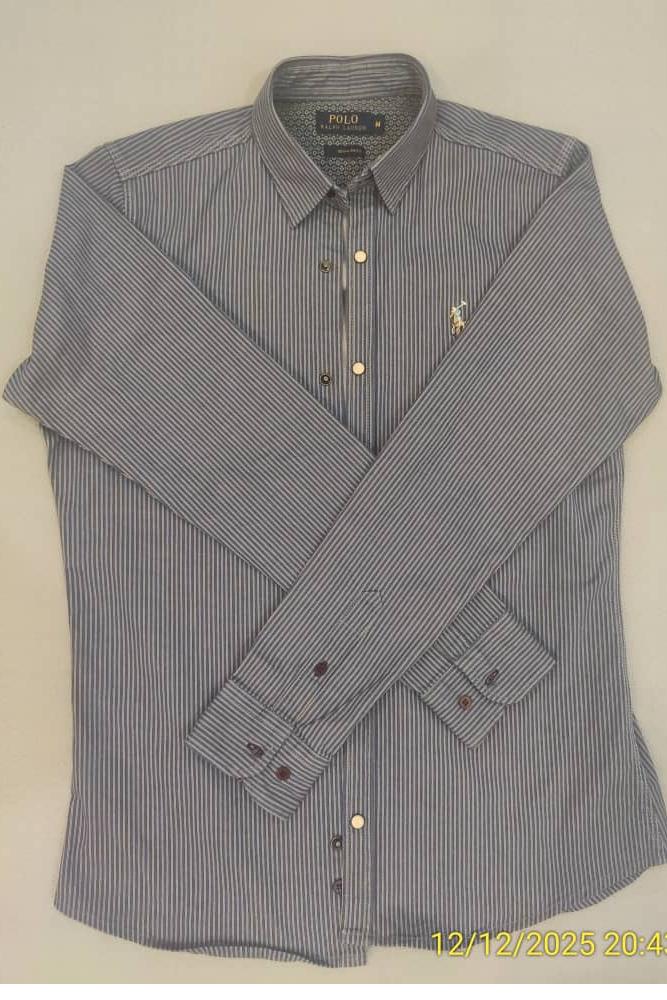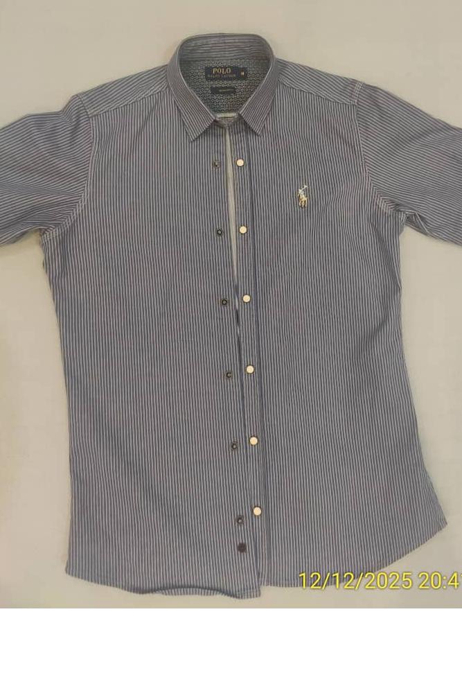 پیراهن آبی راه راه : قد 75 - عرض شانه 43 - آستین 62 - زیر بغل 51