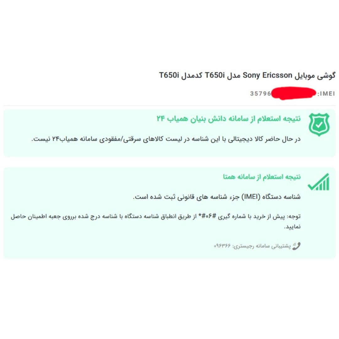 برد کامل گوشی سونی اریکسون T650i / کاملاََ سالم و رجیستر شده فعال در شبکه و وضعیت سفید