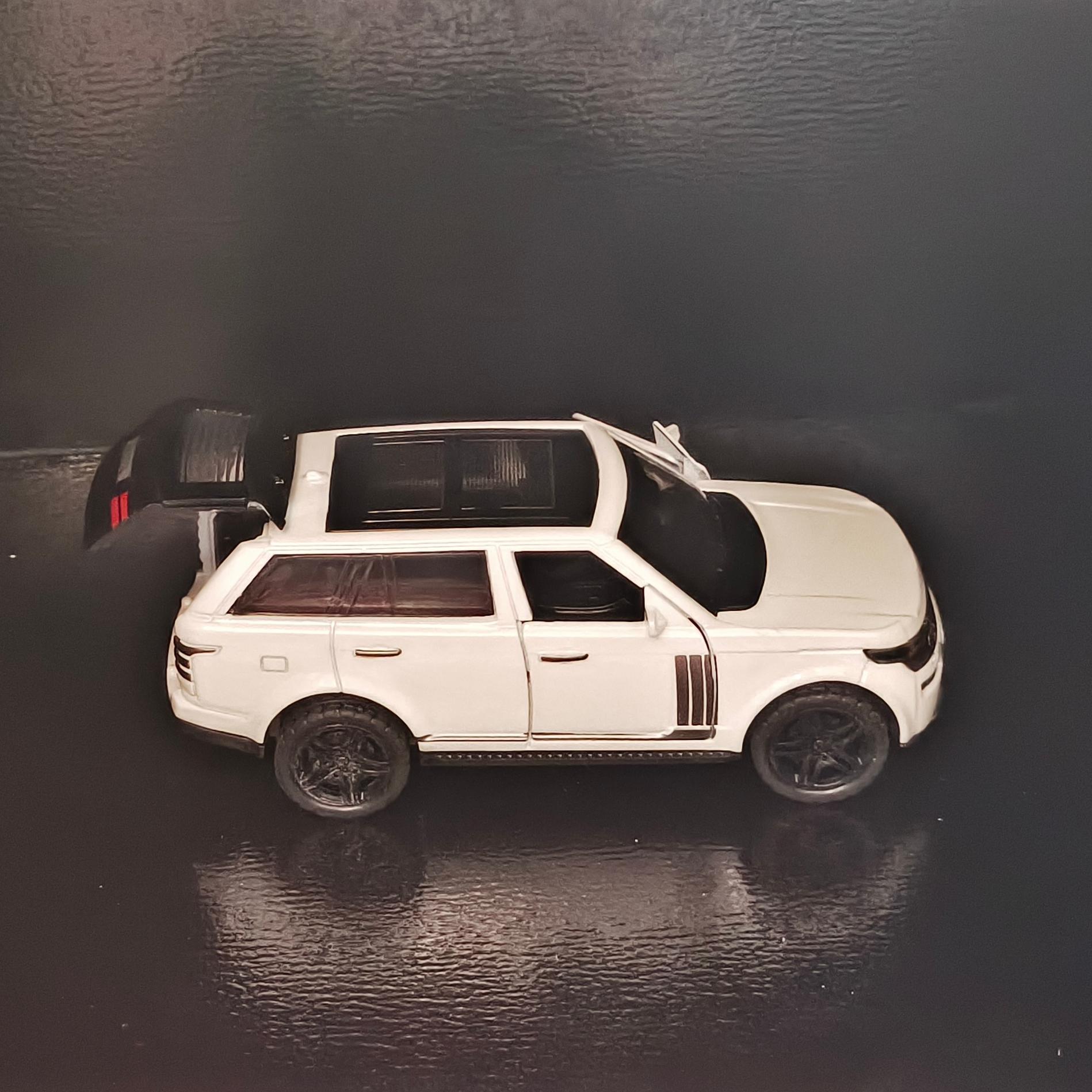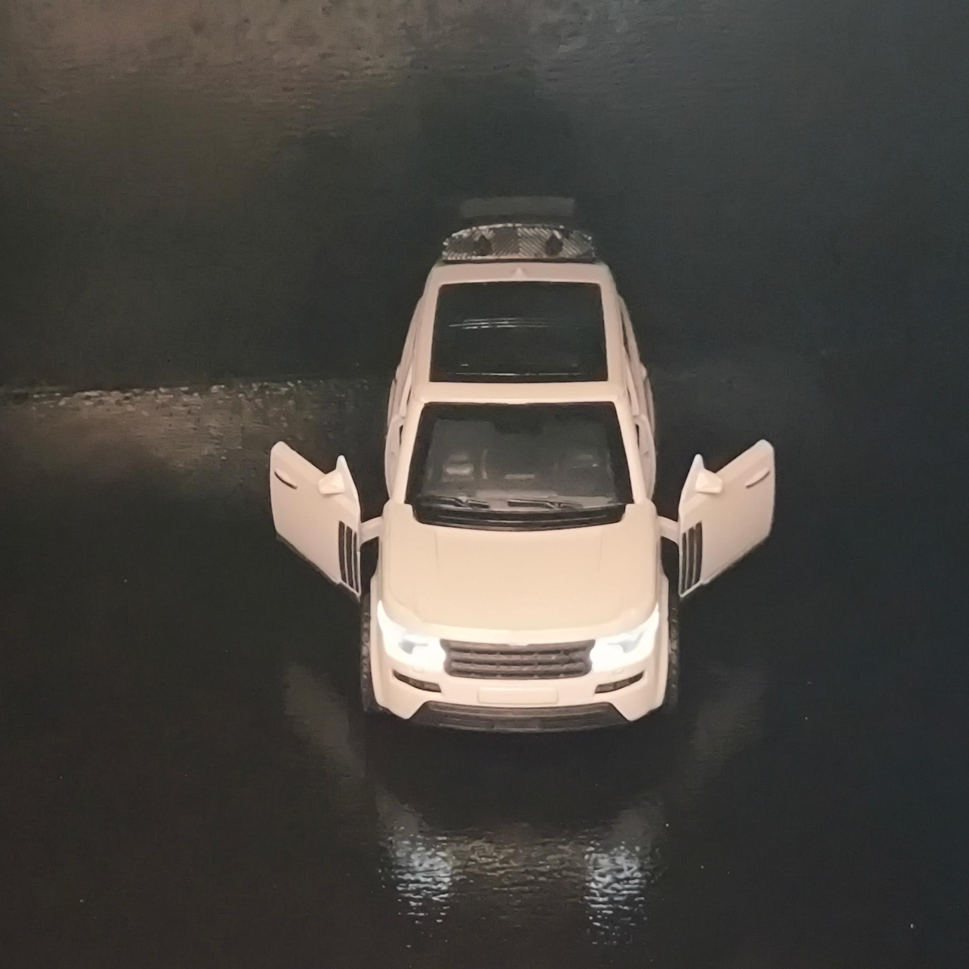 ماکت ماشین فلزی رنجرور موزیکال و چراغدار و عقب کش قدرتی، رنگ سفید، دو درب جلو و صندوق عقب بازشو، کیفیت فوق العاده است و جزئیات داخلی ماشین به خوبی رعایت شده است. این محصول آماده ارسال میباشد و سفارشات عمده یک هفته طول میکشد.