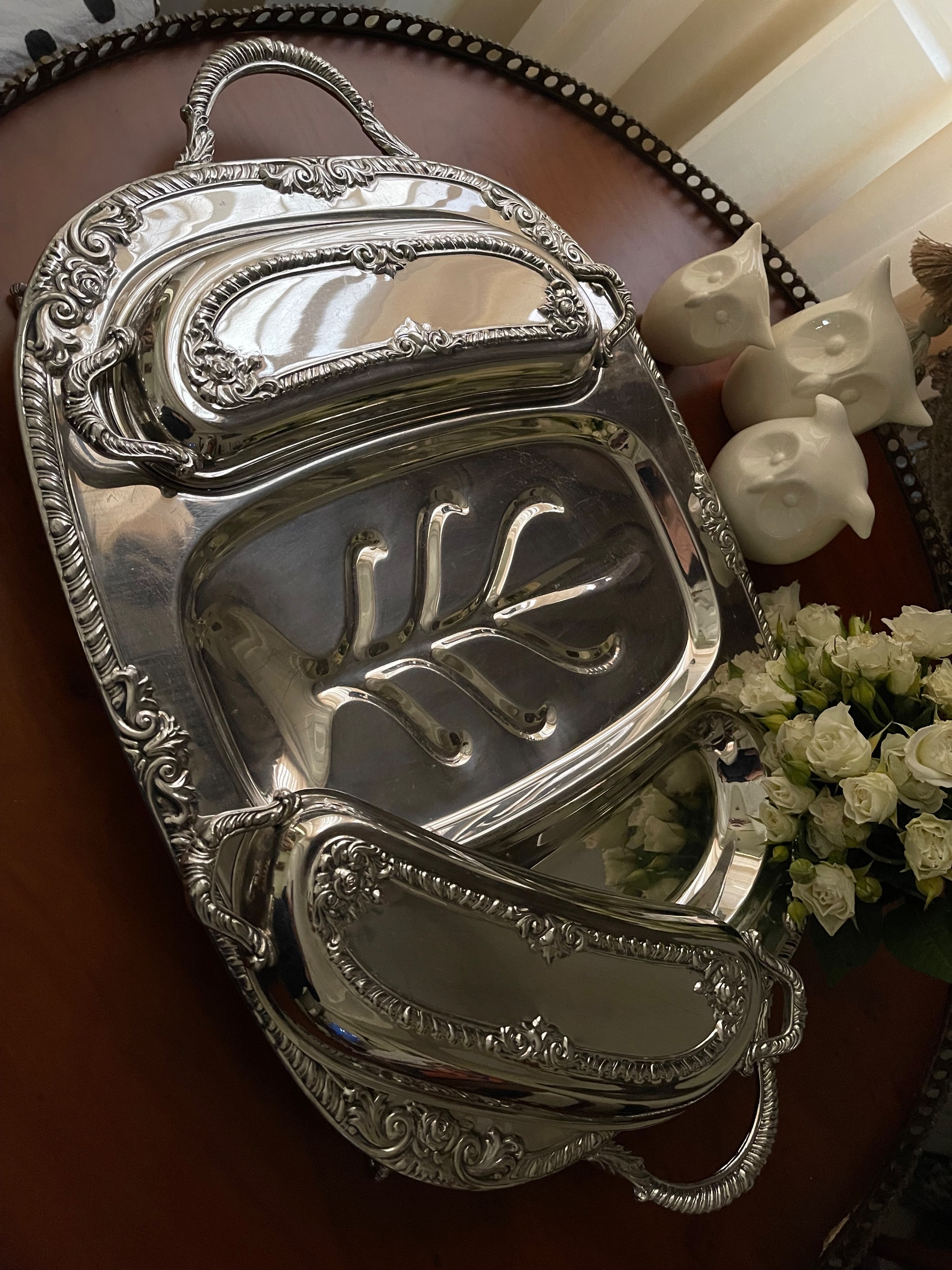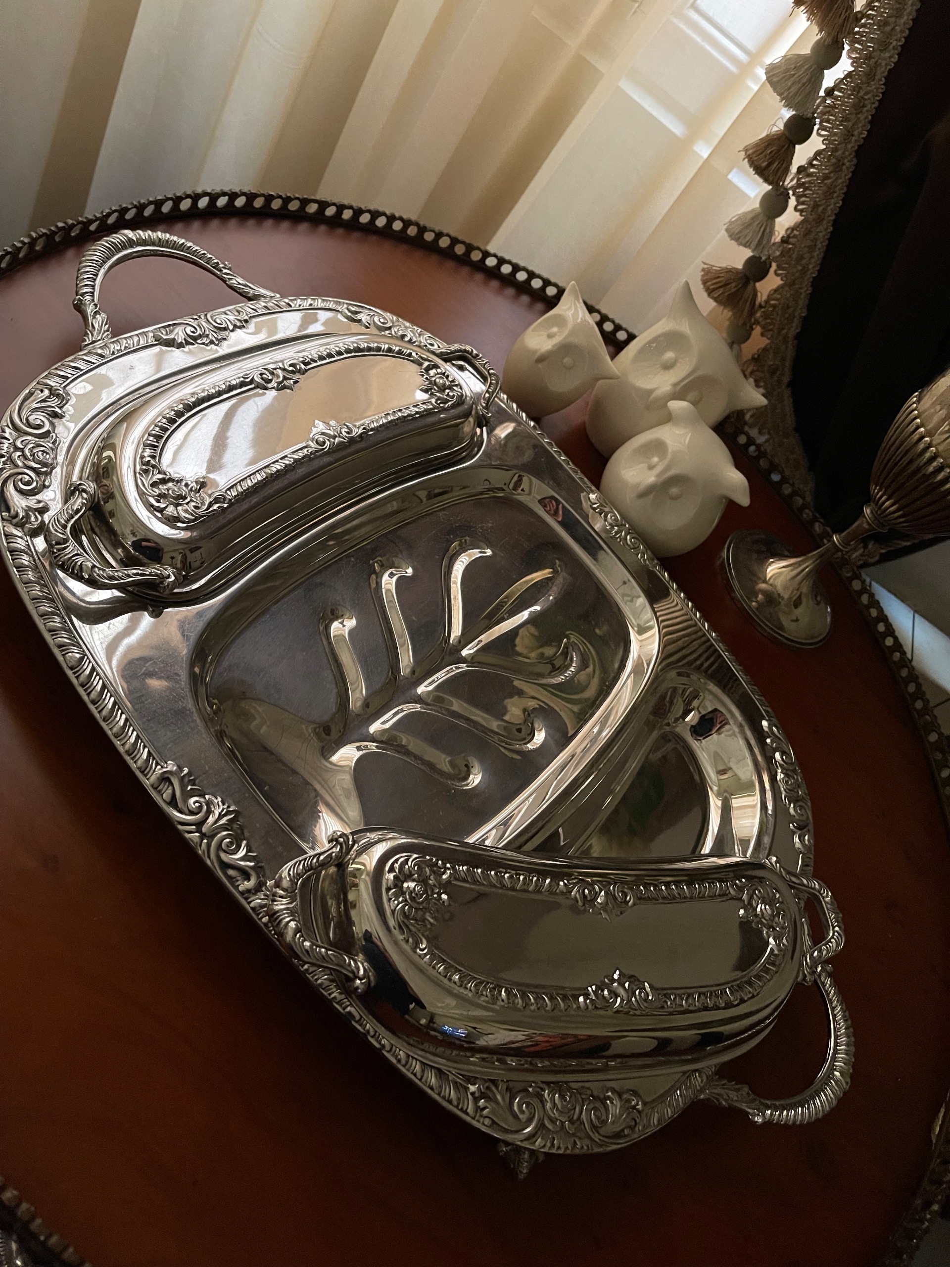 ظرف سیلورپلیت آنتیک مربوط ب حدود 80سال پیش ساخت کانادا دارای حک ومهر