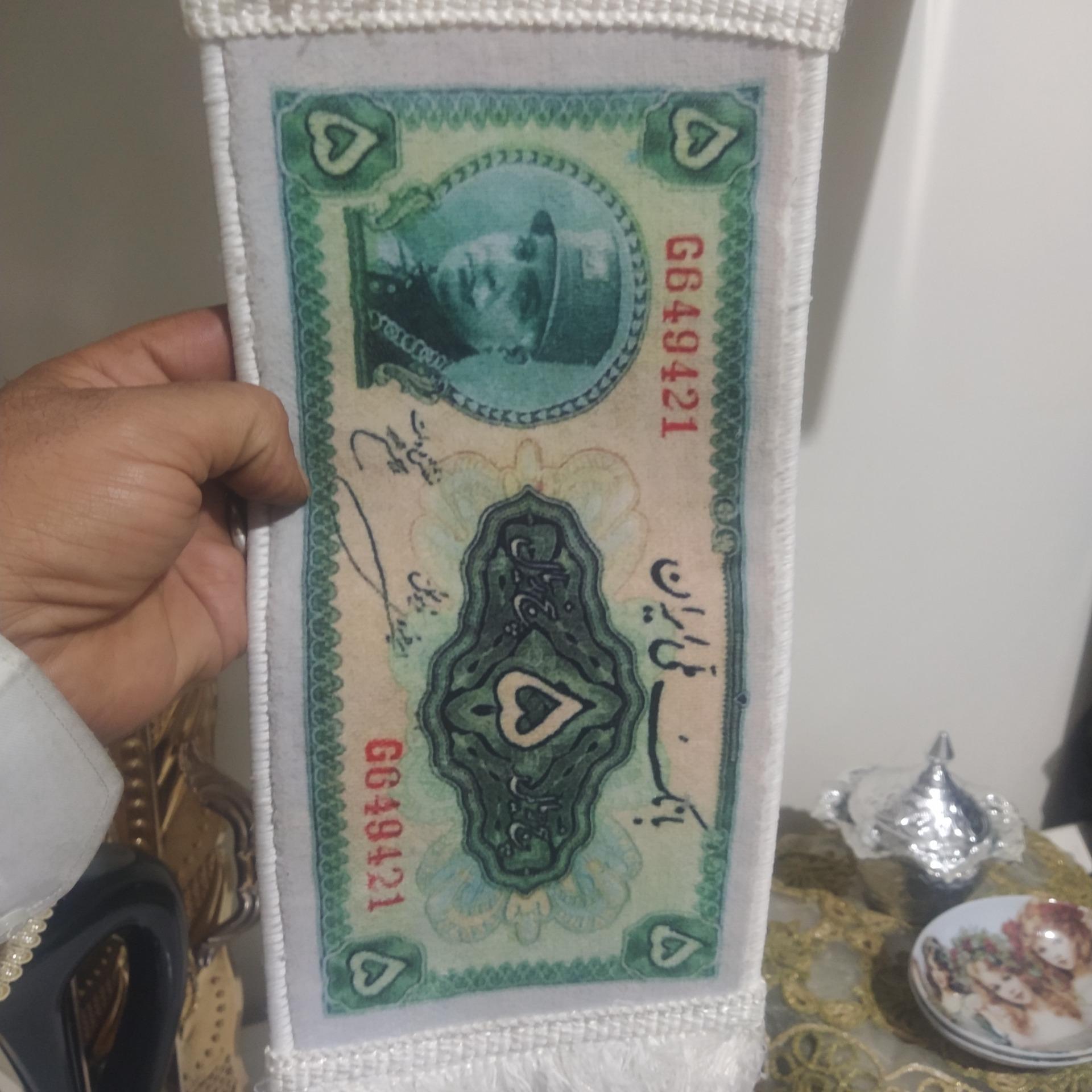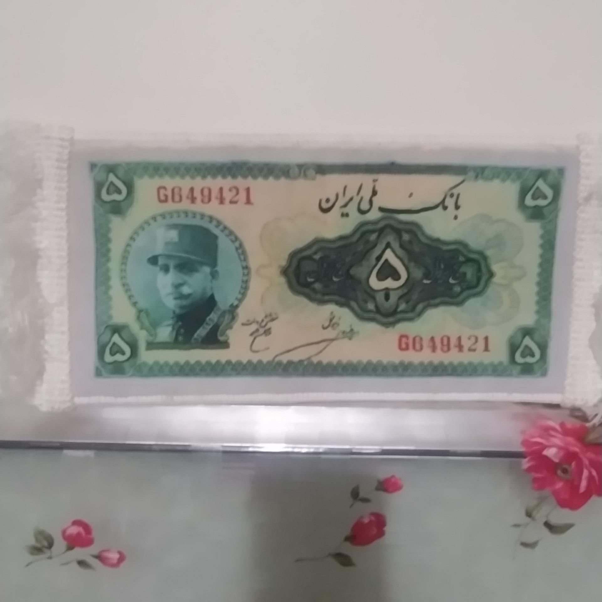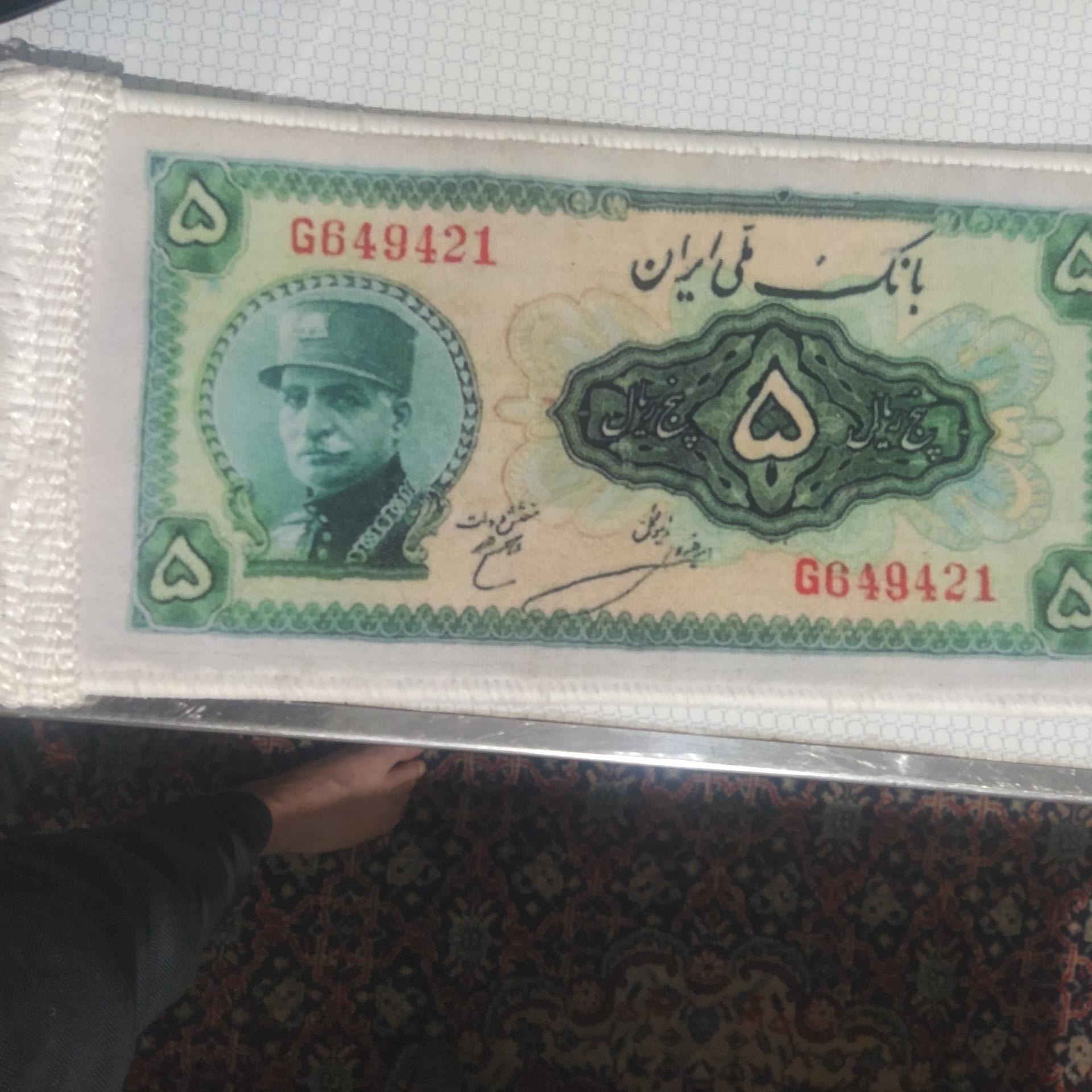 یک عدد تابلو فرش 5ریال رضا شاه پهلوی سفارشی بسیار زیبا و خاص ریز بافت پشت ورو رنگ و کیفیت عالی است بدون انداختن نکته یا چیزی عین یا شاید از خود تصویر پول هم باکیفیت تر است درعین حال که قدمت زیادی ندارد ولی درکل یک اثر کلکسیونی وتاریخی است