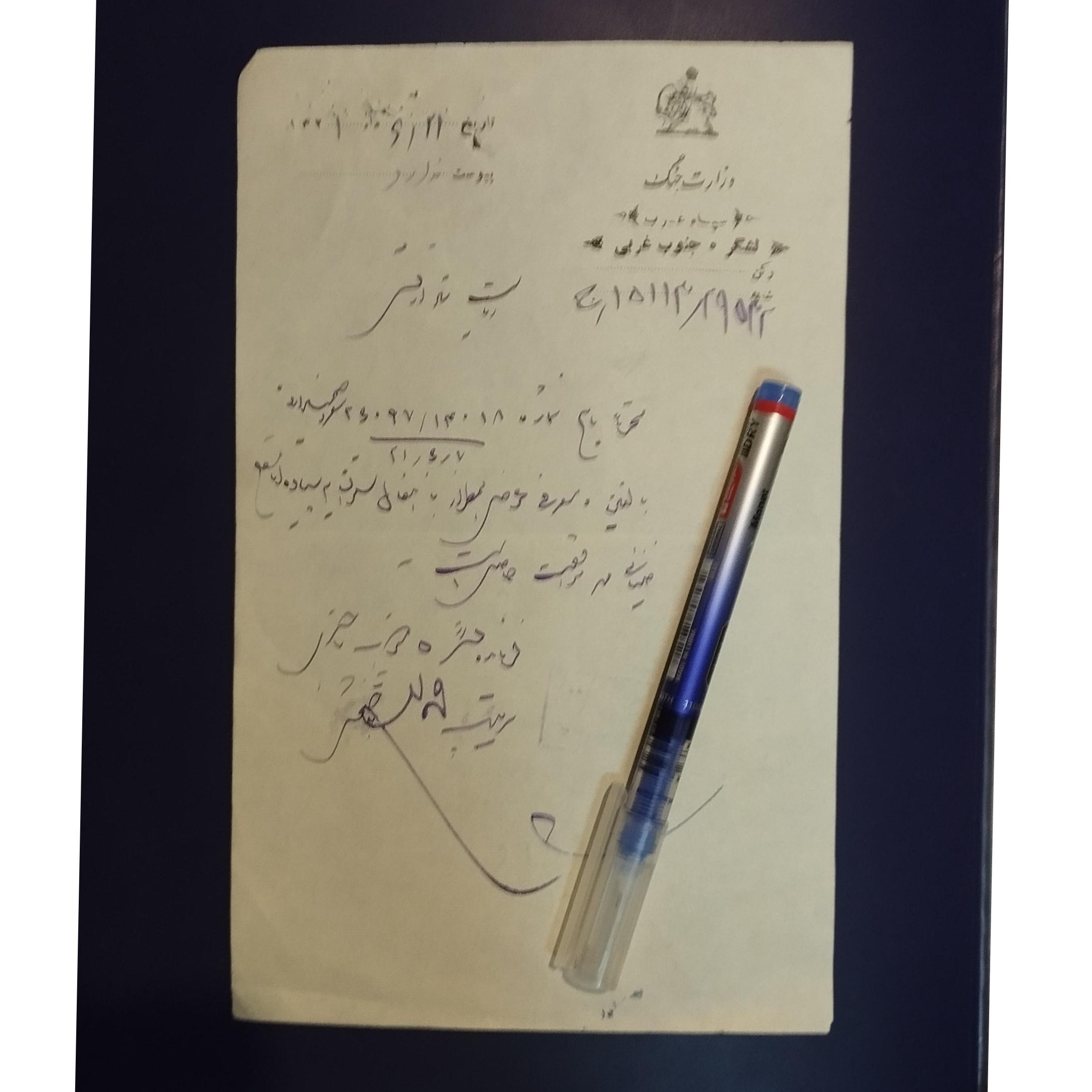 نامه بسیار زیبا مربوط به لشگر جنوب غرب همراه با دستخط و امضای مهدی قلی تاجبخش فرمانده لشگر جنوب غرب مربوط به اوایل دوره محمدرضاشاه. اندازه سندa5.