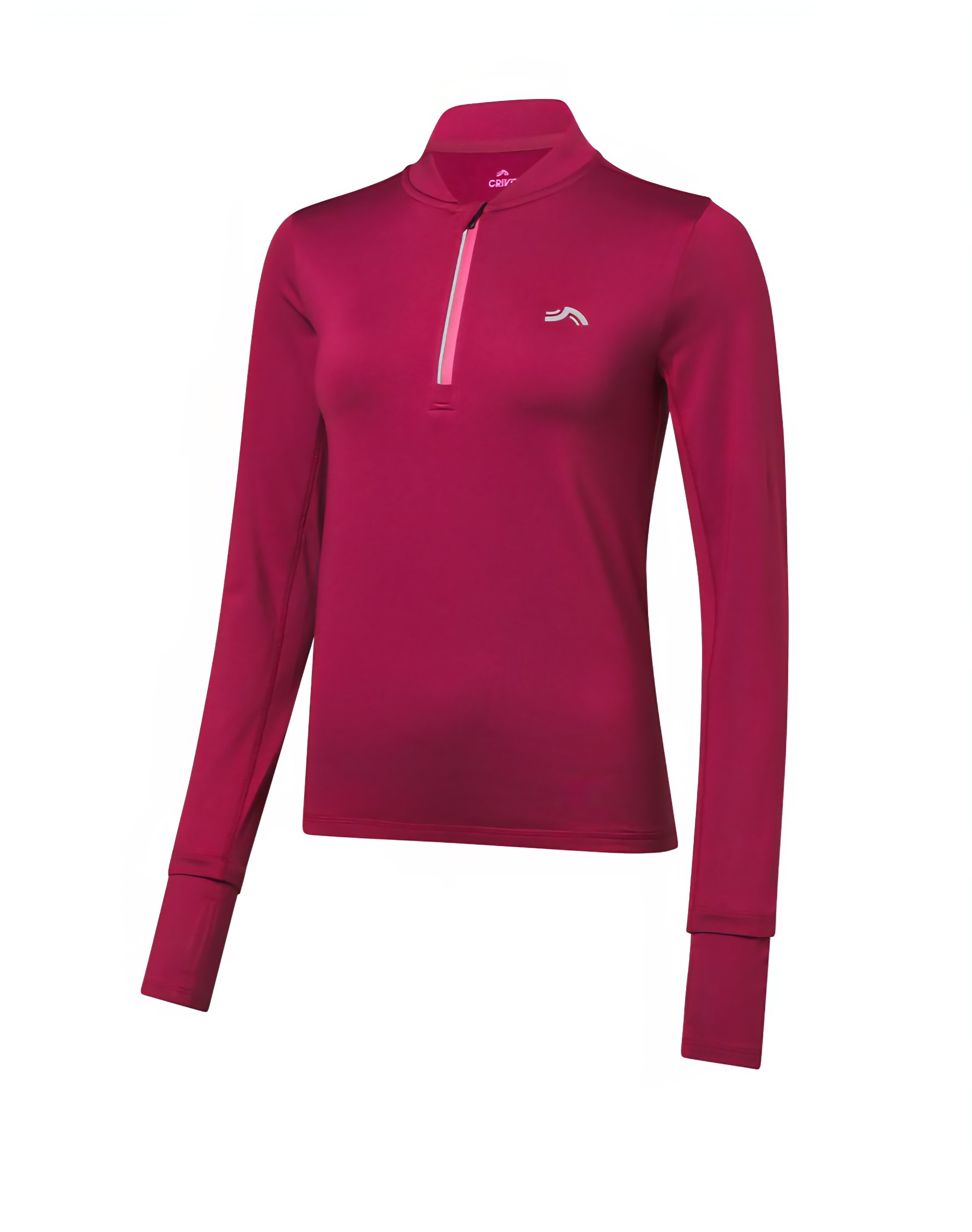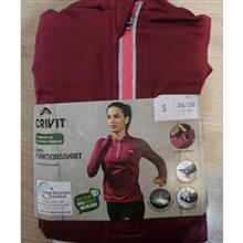 پیراهن ورزشی زنانه Crivit (سایز S 36/38) - زرشکی تیره | نیمزیپ، تکنولوژی DryBase، تولید با مواد بازیافتی (نو)