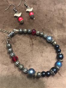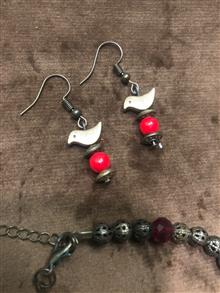 سنگ گوشواره  : اونیکس مشکی براق، کریستال قرمز، سنگ طوسی