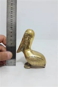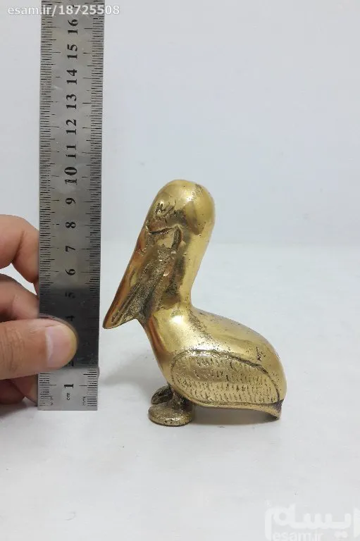 مجسمه پرنده ماهی خوار (پلیکان) برنجی ارتفاع 10/5 سانت طول 8 سانت عرض 4/5 سانت وزن 300گرم ساخت ایران
