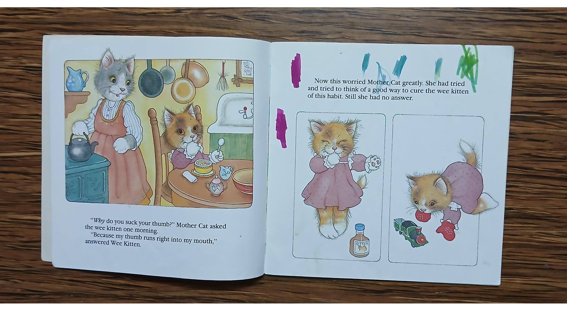 کتاب کودکTHE WEE KITTEN(یک صفحه باماژیک خط خورده)