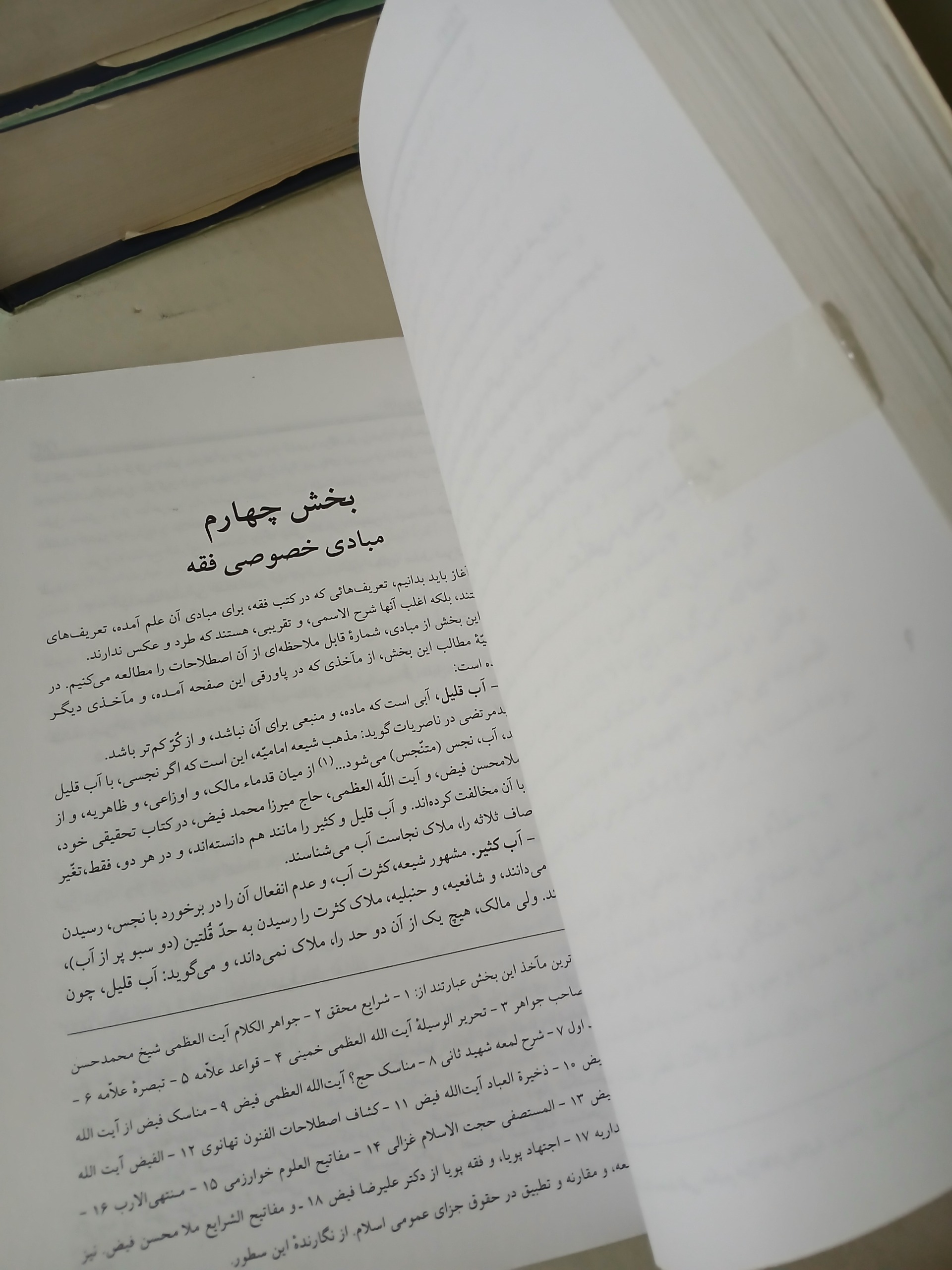 حدود هشتاد صفحه از کتاب حاشیه نویسی و خط کشی زیر متن موجود است. حدود 5-6 صفحه از کتاب هم برلی جدایی بخش ها چسب زده شده که در تصاویر دیده میشود. پارگی و نقص صفحات ندارد.