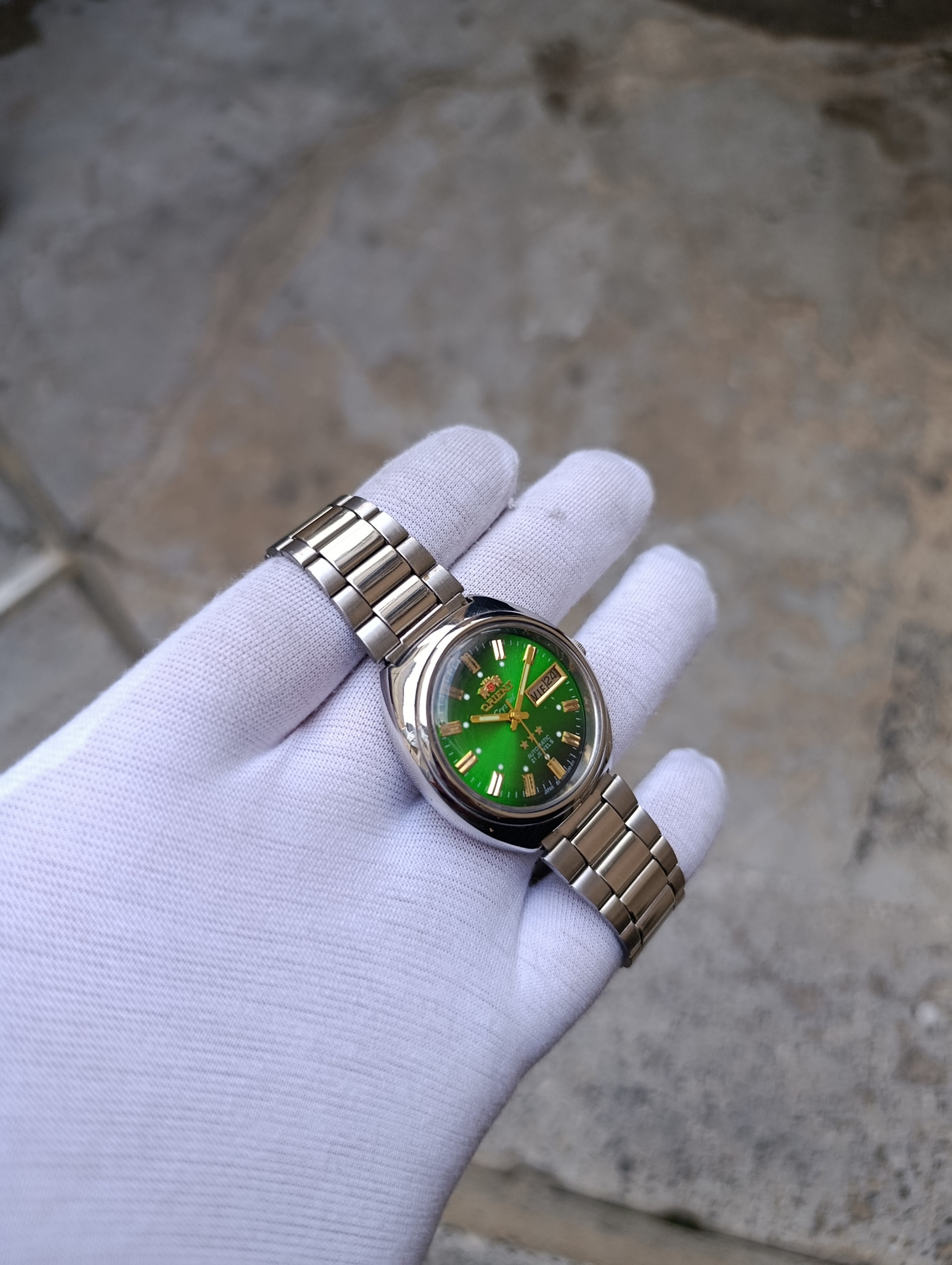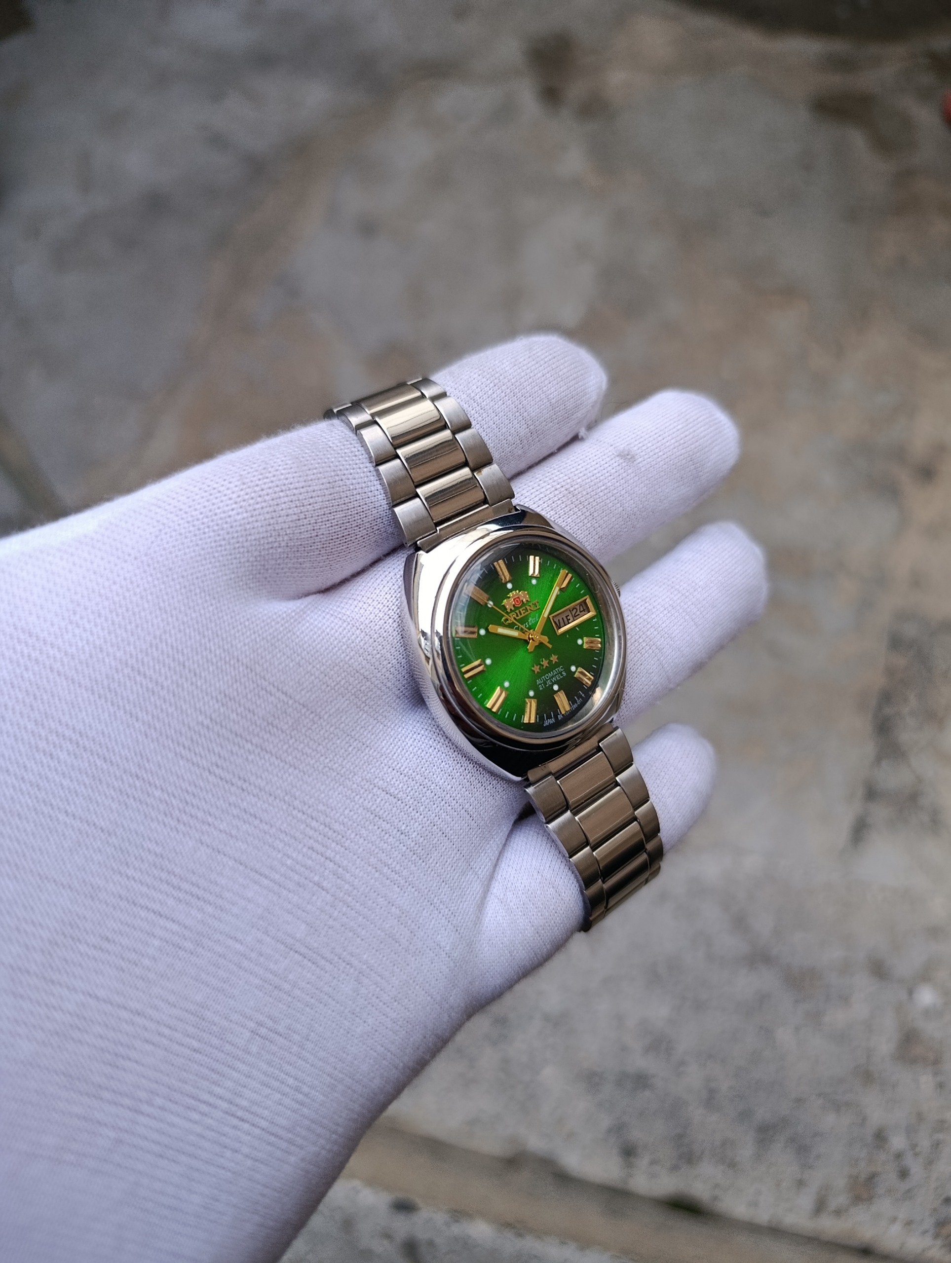 فروش یک عدد ساعت اورینت تک پل اتوماتیک اصلی ساخت ژاپن سری قدیم تمام فابریک و پلمپ بدون خط و خش و ایراد قاب درشت