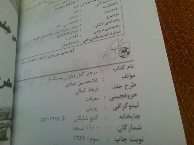 کتاب ویژوال بیسیک6تالیف غلامحسین عبادی چاپ1389