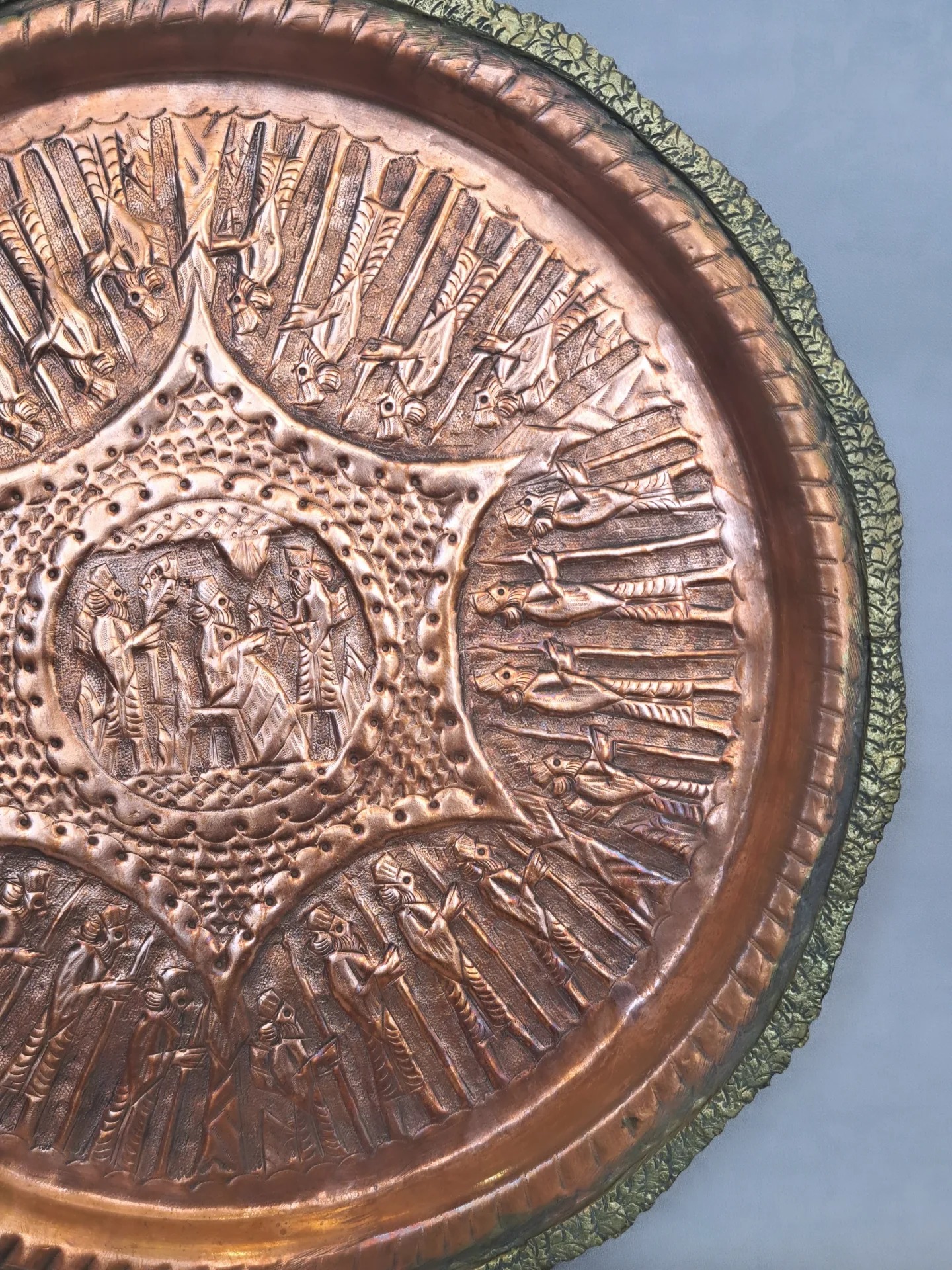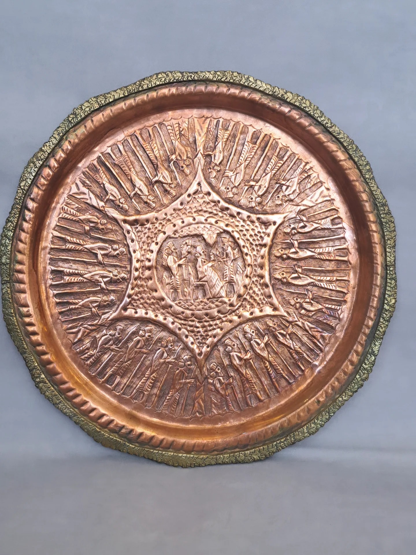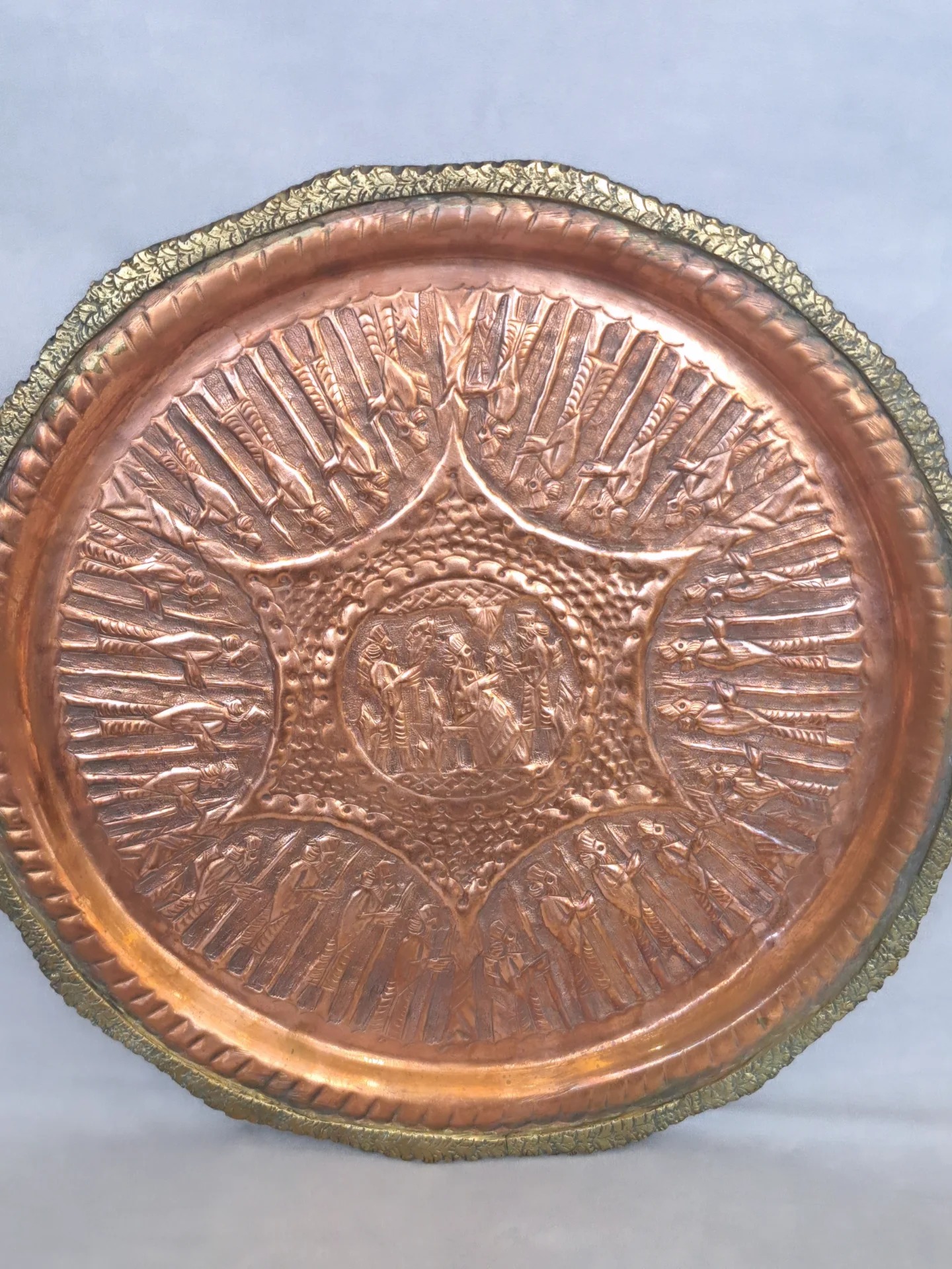 سینی قلم پهلوی مسی حدود 900 گرم ،حدود ،