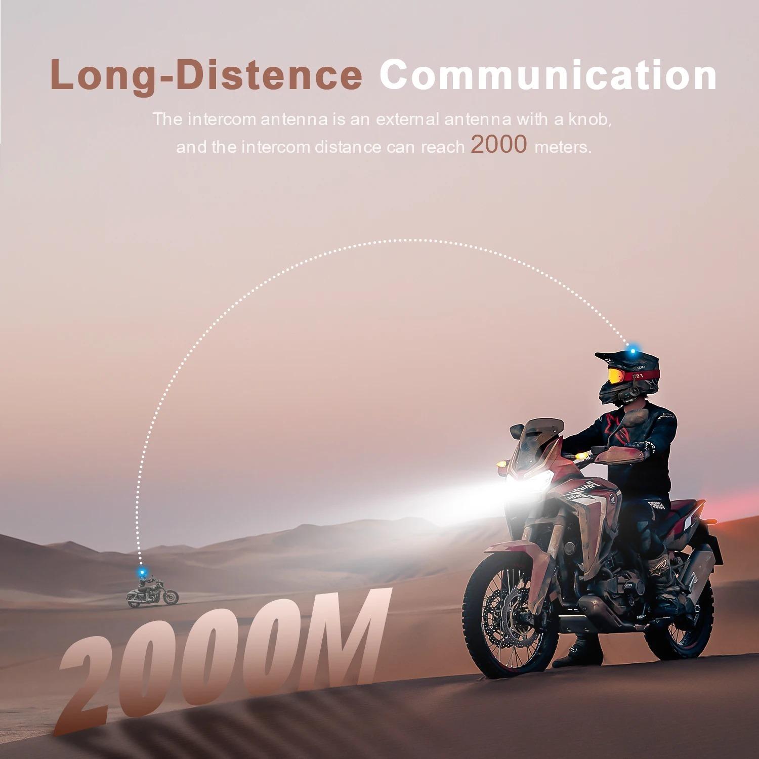 ارتباط داخلی گروهی 8 موتورسوار و جفتسازی جهانی: سیستم ارتباط داخلی بلوتوث Fodsports FX8 از ارتباط داخلی گروهی حداکثر 8 موتورسوار به طور همزمان در برد 2000 متر پشتیبانی میکند. طراحی منحصر به فرد آنتن، سیگنال ارتباطی را افزایش میدهد و باعث میشود شما و سایر موتورسواران بتوانید از لذت ارتباط در تمام طول مسیر بهرهمند شوید. تراشه هوشمند بلوتوث 5.0 سازگاری بالایی را تضمین میکند که میتواند با GPS، پخشکننده موسیقی و اکثر هدستها یا هدفونهای بلوتوث موجود در بازار، مانند FX4 Pro، M1s Pro، M1s Plus، FX6 و غیره سازگار باشد.