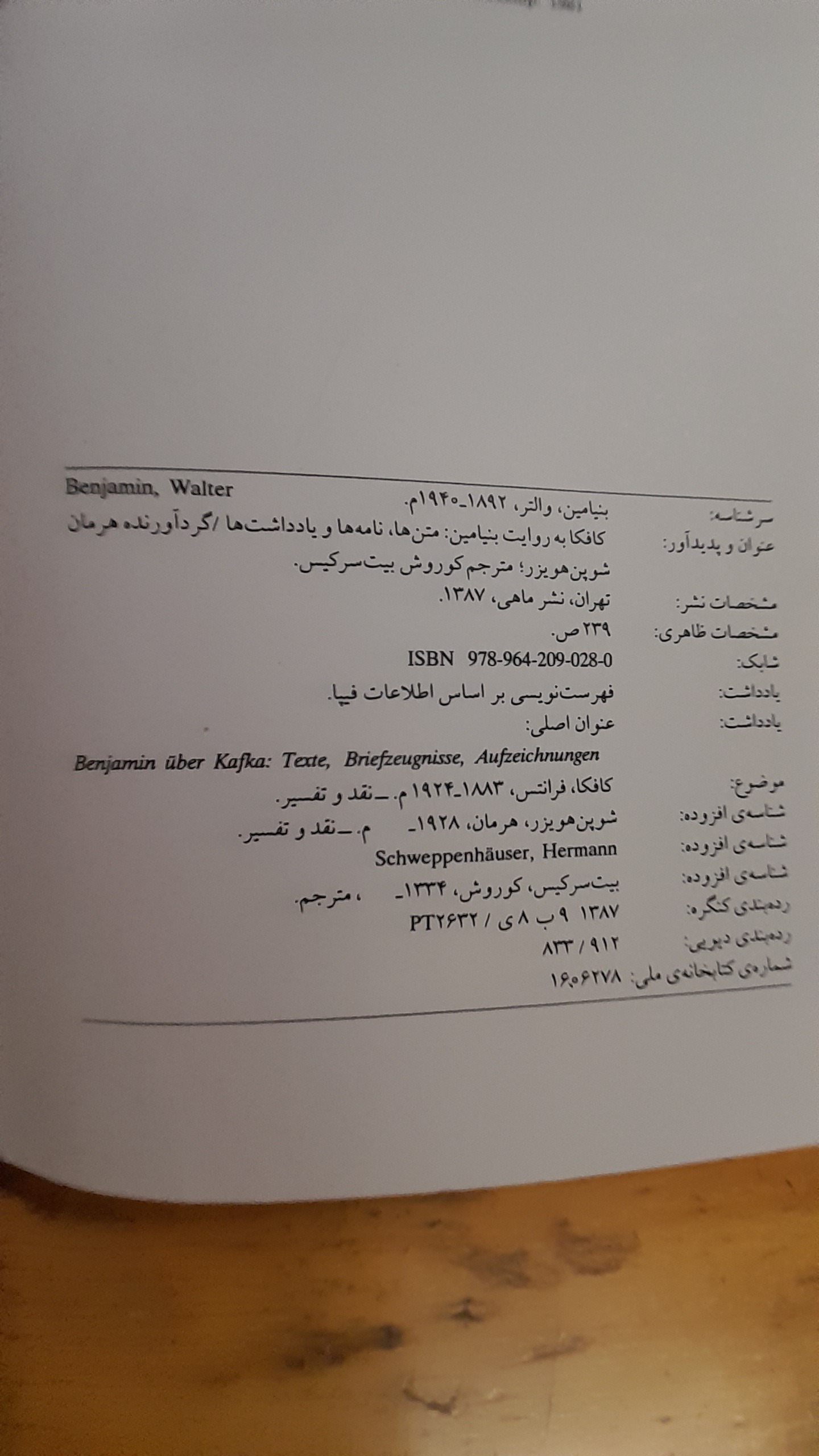 کافکا به روایت بنیامین- مترجم کوروش بیت سرکیس