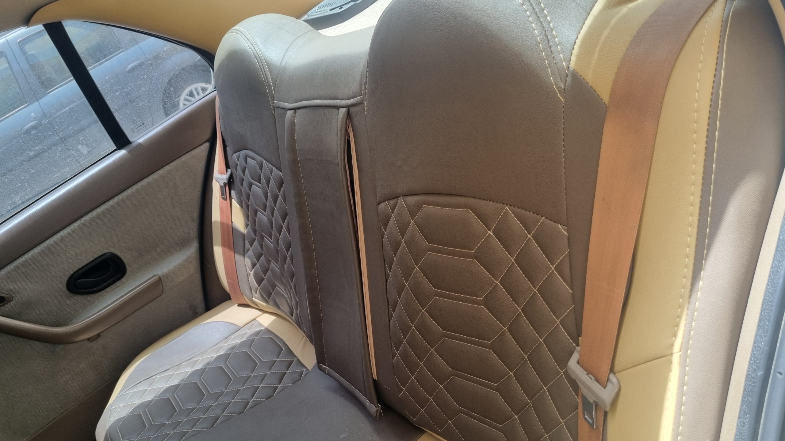 -روکش صندلی طبی سمند چرم شاهسوند قهوه ای کرم(یک تومن زیرقیمت بازار)