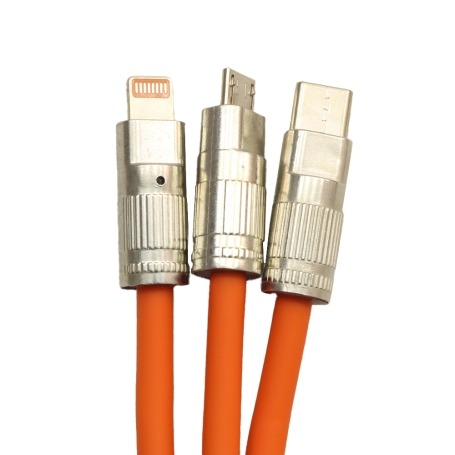این کابل با سه کانکتور مختلف (Lightning ، USB-C، Micro-USB)، امکان اتصال و شارژ انواع گوشیها، تبلتها، اسپیکرها و دیگر دستگاههای دیجیتال را فراهم میکند. با طراحی مقاوم، میتوانید به راحتی دستگاههای مختلف خود را با یک کابل شارژ کنید.