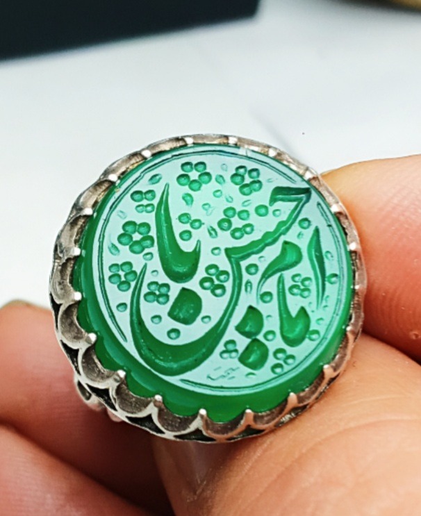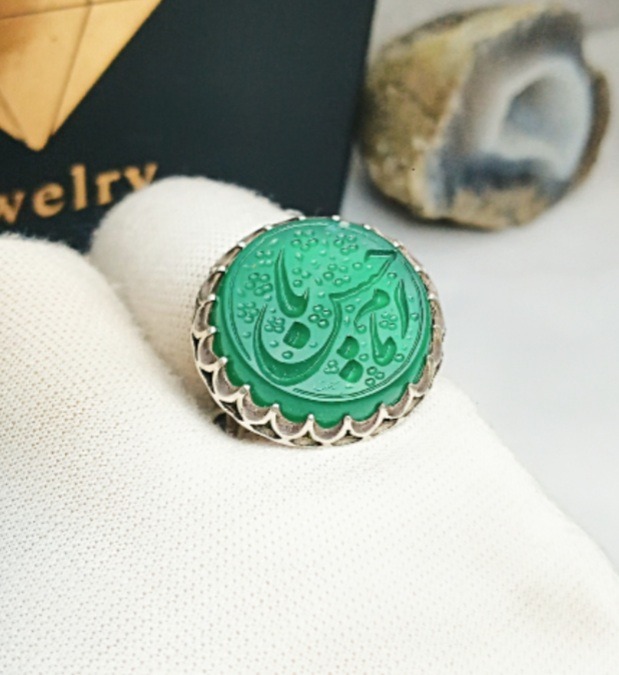 انگشتر زیبا و شیک عقیق سبز معدنی با خط زیبا و امضا دار دوستان توجه کنی امضای استاد خطاطش هست اینا رو ارزون خط و امضا نمیزنن استعلام بگیرید بالای 2500 هزینه خط امضا دار میبرن شایدم بیشتر