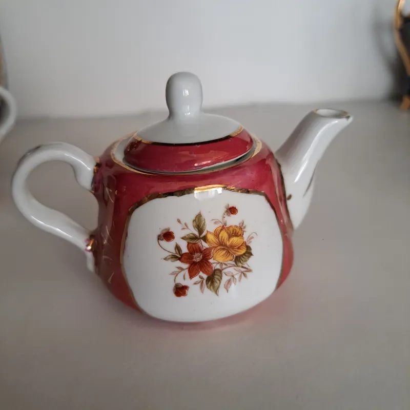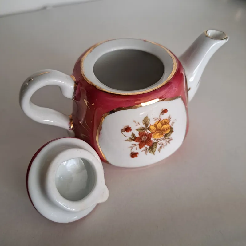 قوری مینیاتوری چینی قرمز قدیمی نو