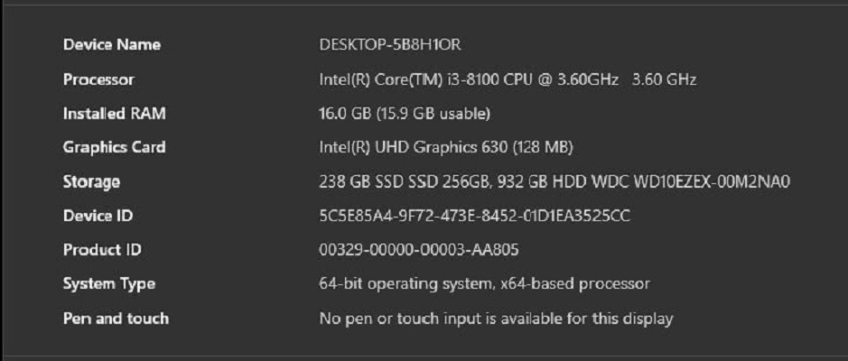 پردازنده : CPU Intel (R) Core (TM) i3-8100 3.60GHz
