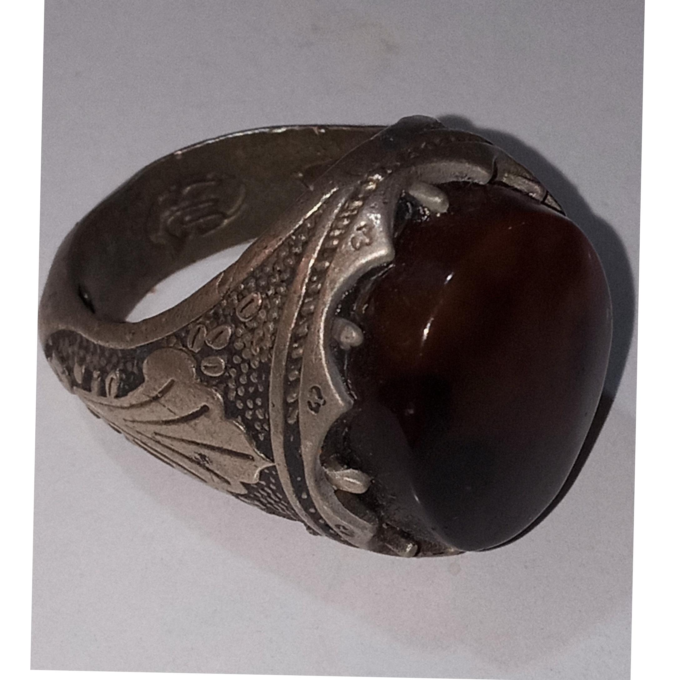 انگشترنقره. عیار74 بانگین عقیق قهوه ایی خراسان دیدنی مرغوب