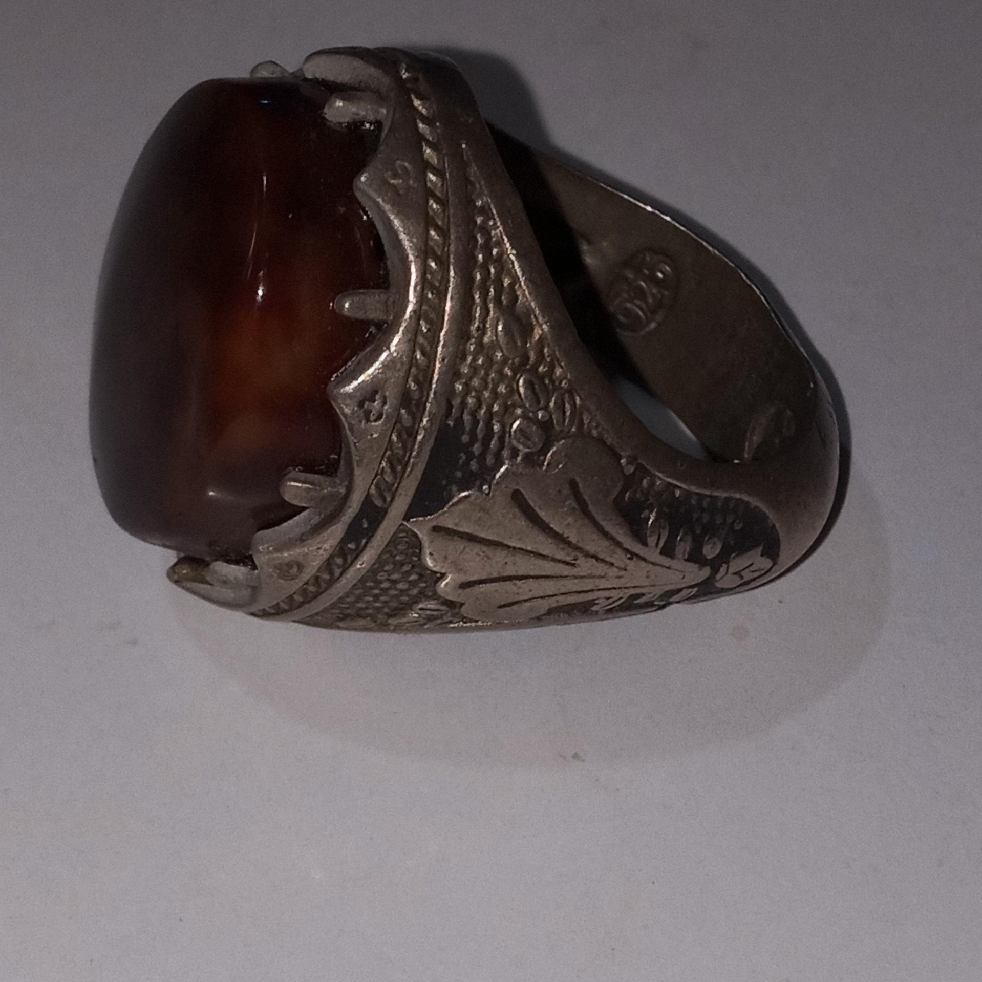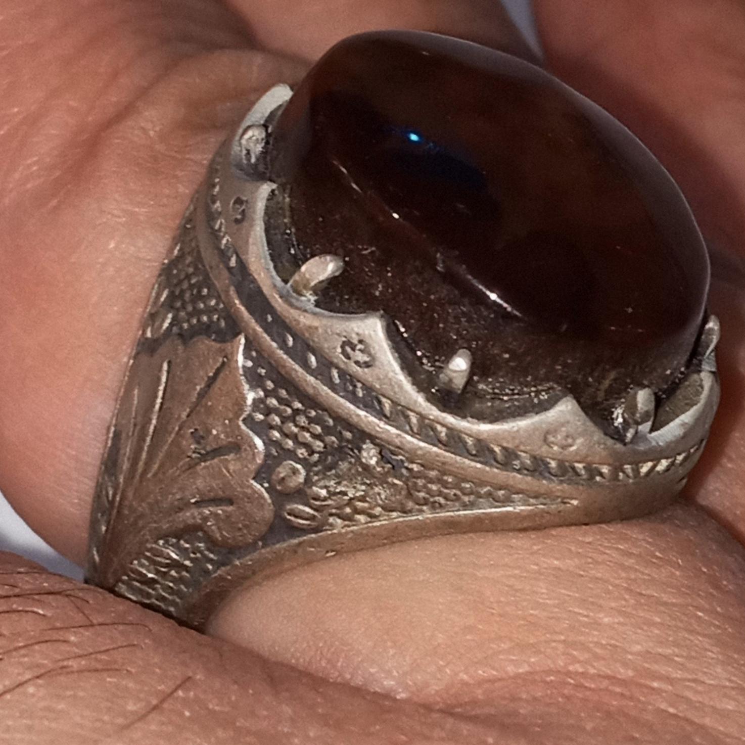 انگشترنقره درشت عقیق تریاکی خراسان ناب ودیدنی