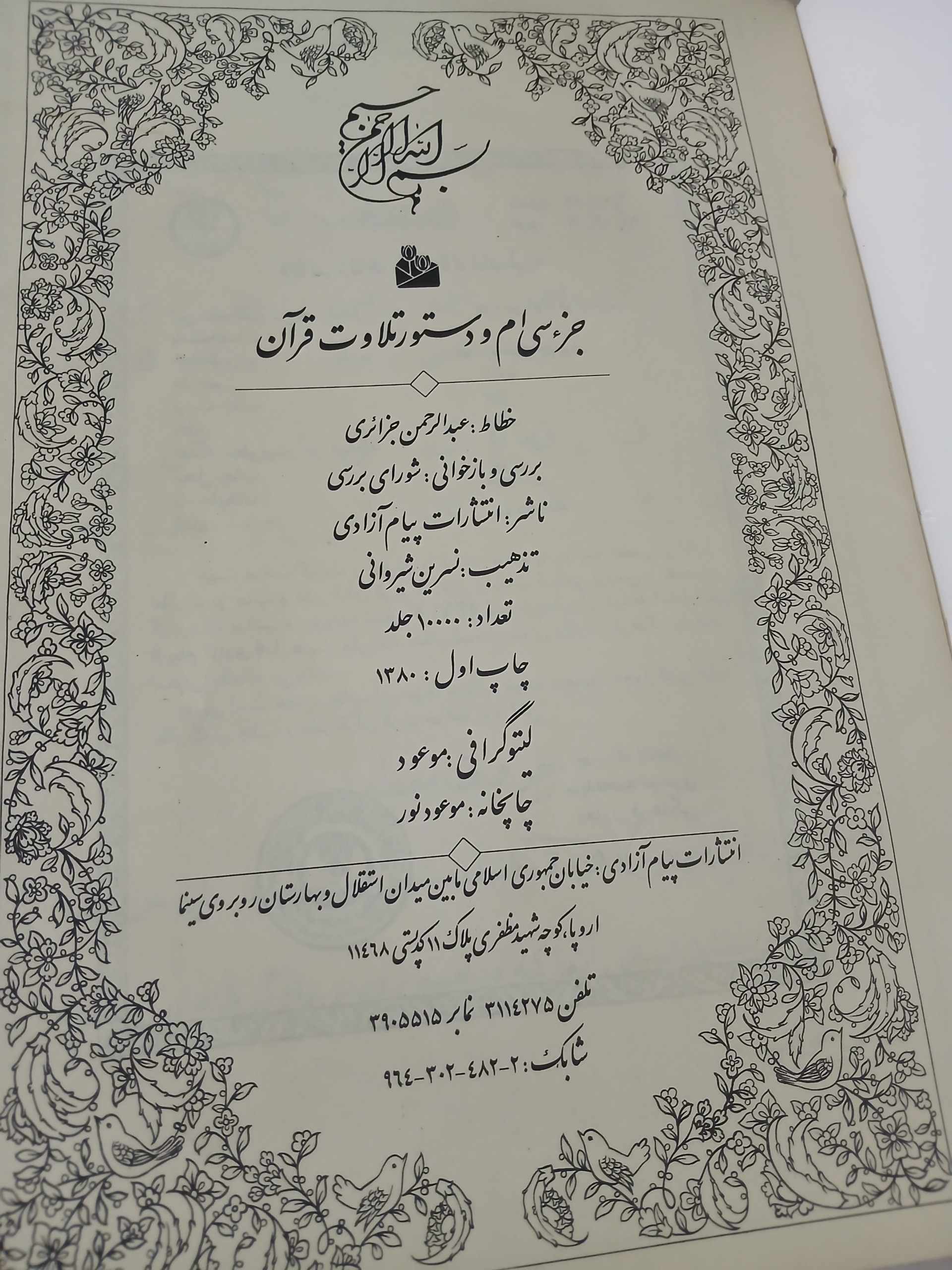 جزء سی ام قرآن (خط درشت) و دستور تلاوت قرآن