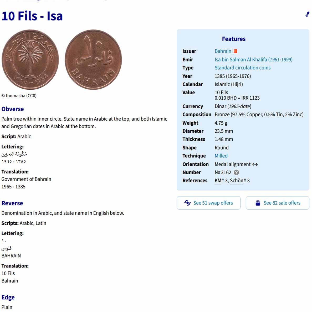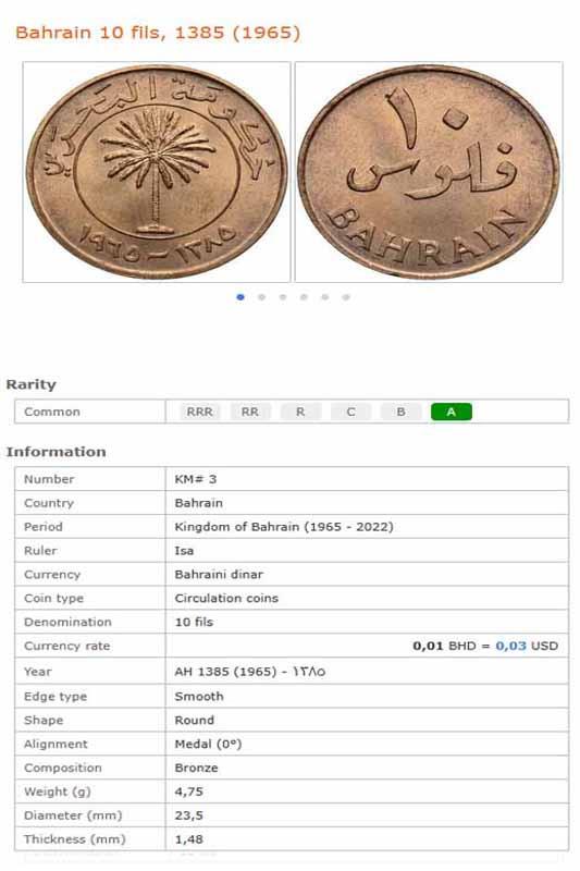 سکه 10 فلوس بحرین 1965 (کمیاب)