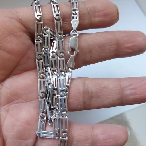 زنجیر نقره خوش بافت ایتالیایی روکش رودیوم کمیاب بدون تکرار و وارداتی درشت و سنگین