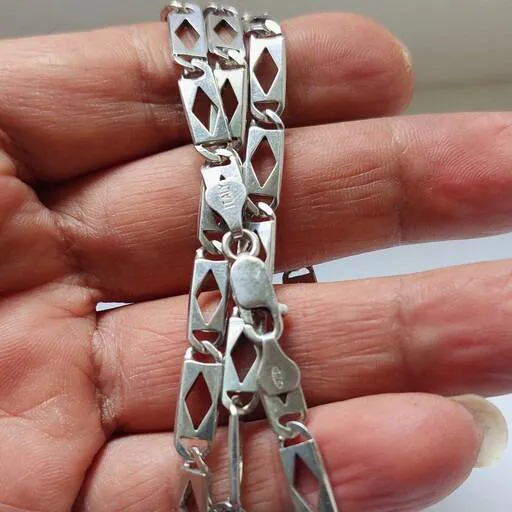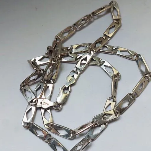 زنجیر نقره خوش بافت ایتالیایی روکش رودیوم کمیاب بدون تکرار و وارداتی درشت و سنگین