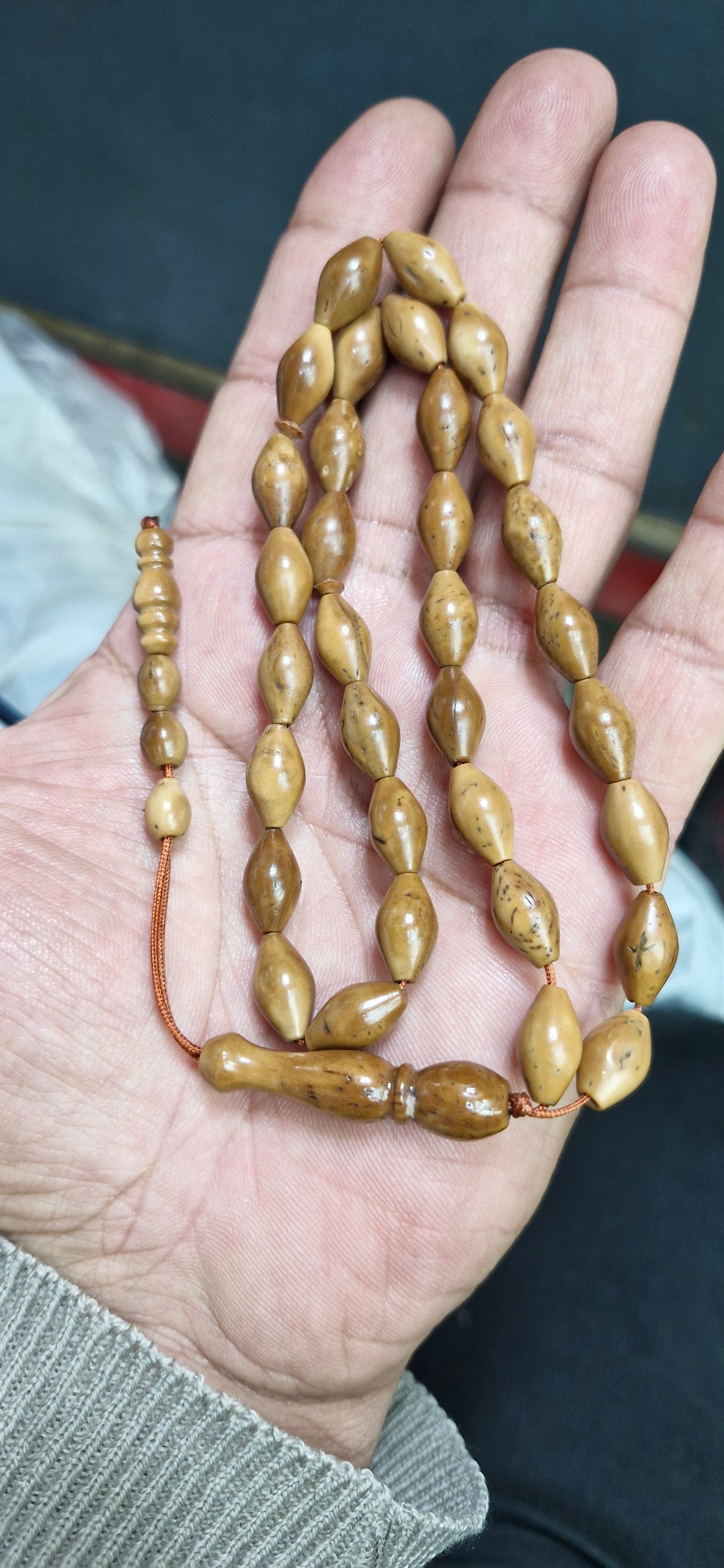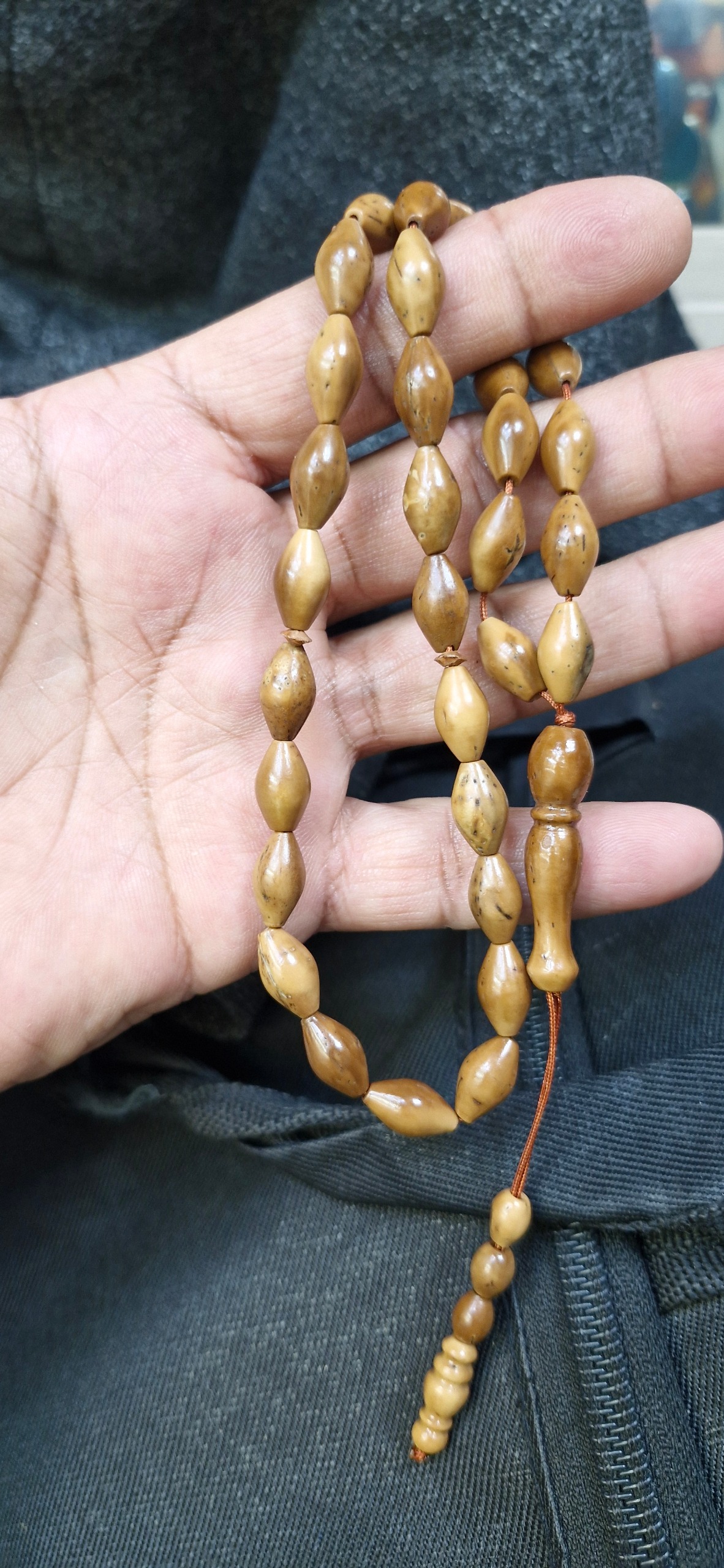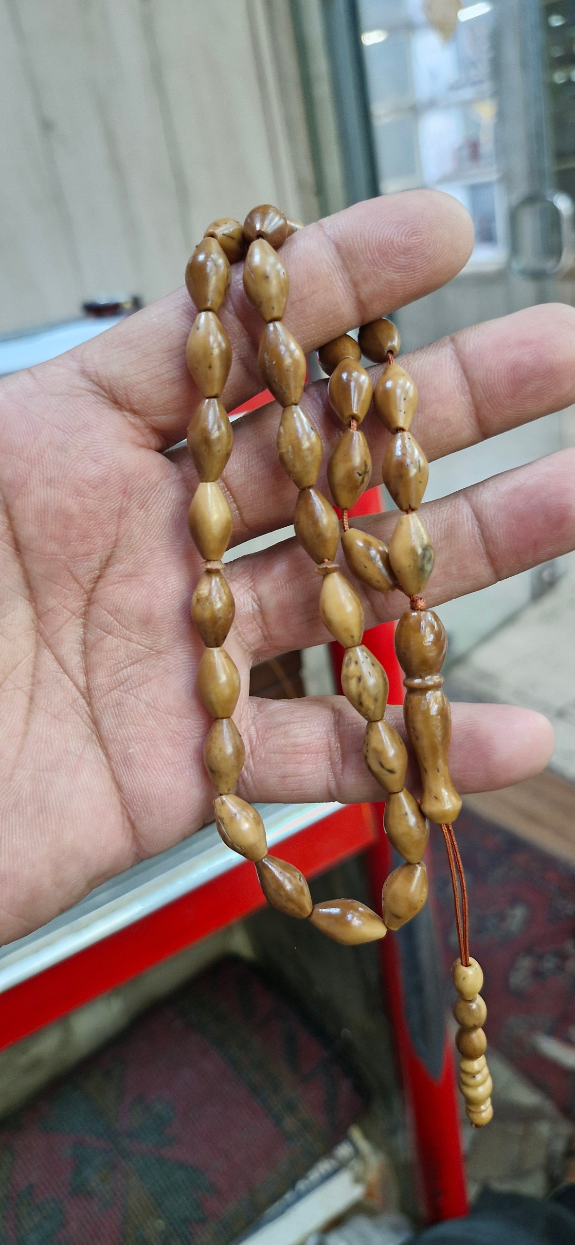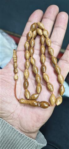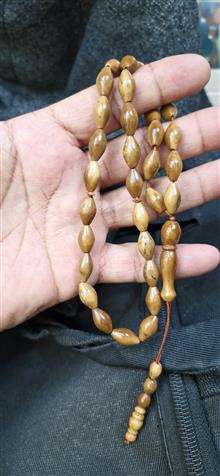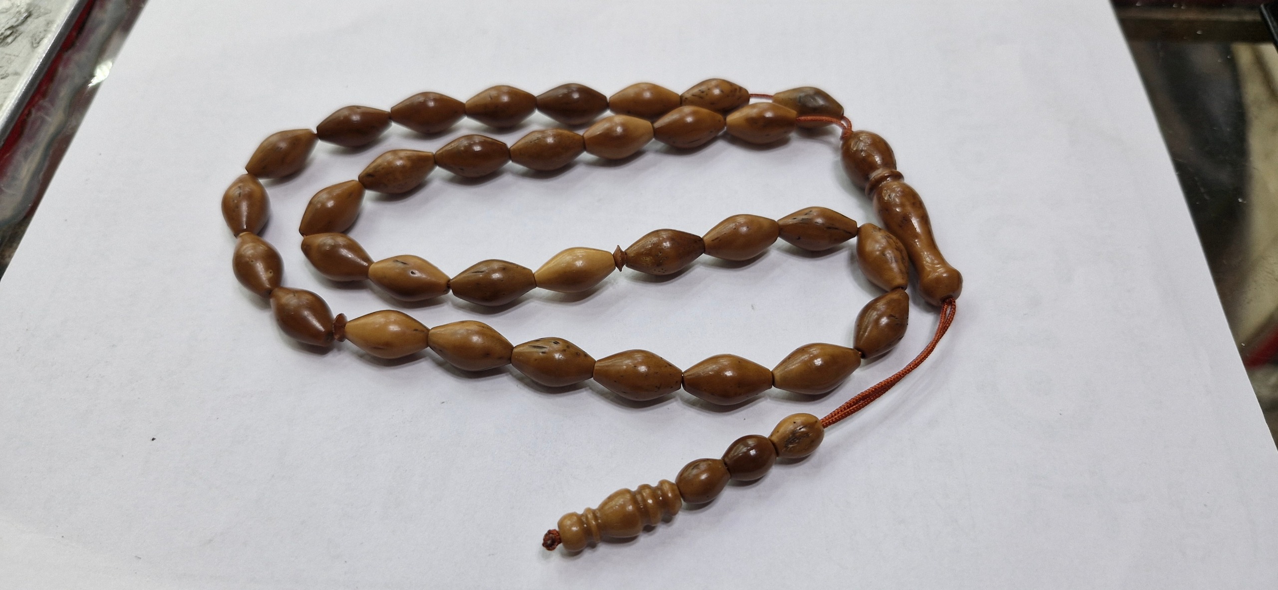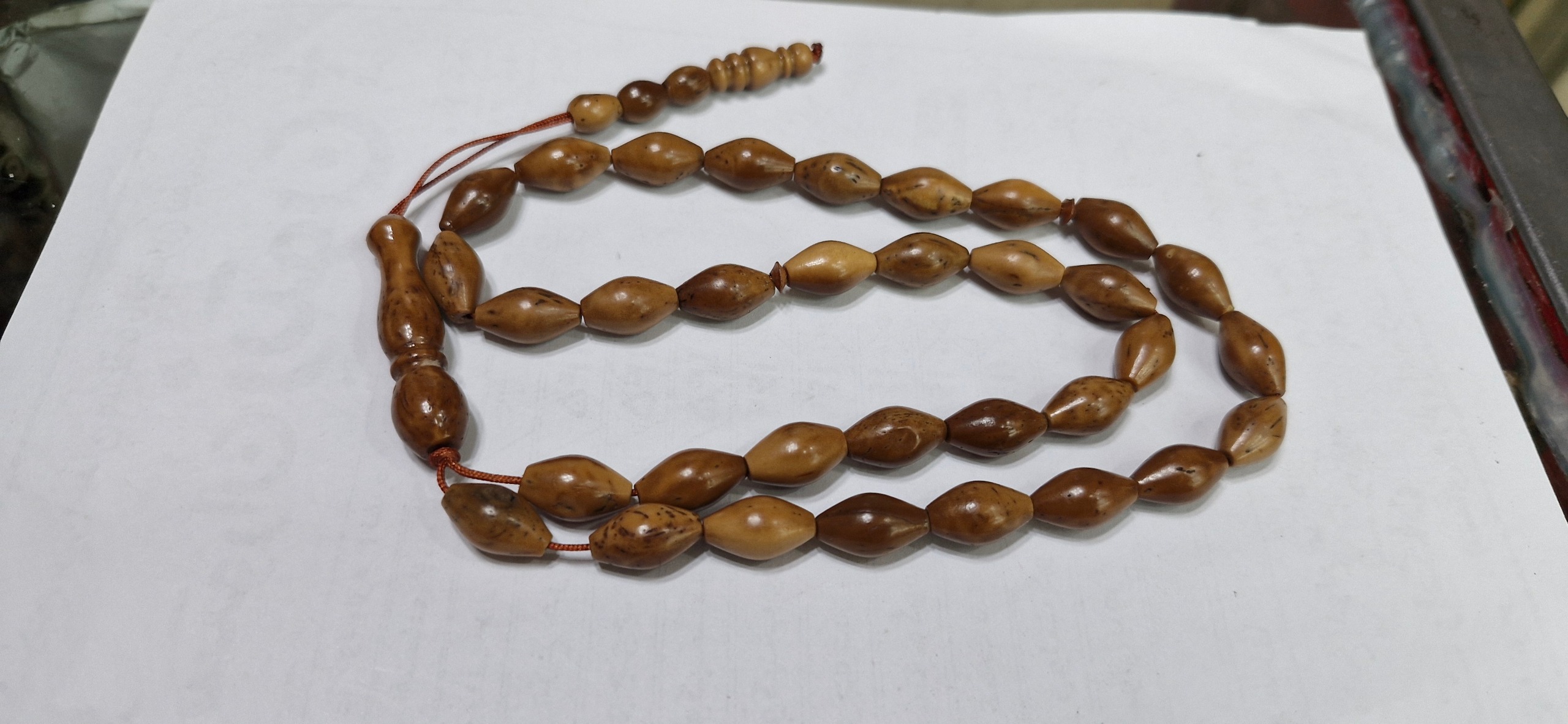 تسبیح کشکول آفریقایی سی و سه دانه تراش دست تهیه شده از پوست بادام آفریقایی کار مصر زیبا و خوش دست سایز کارمندی