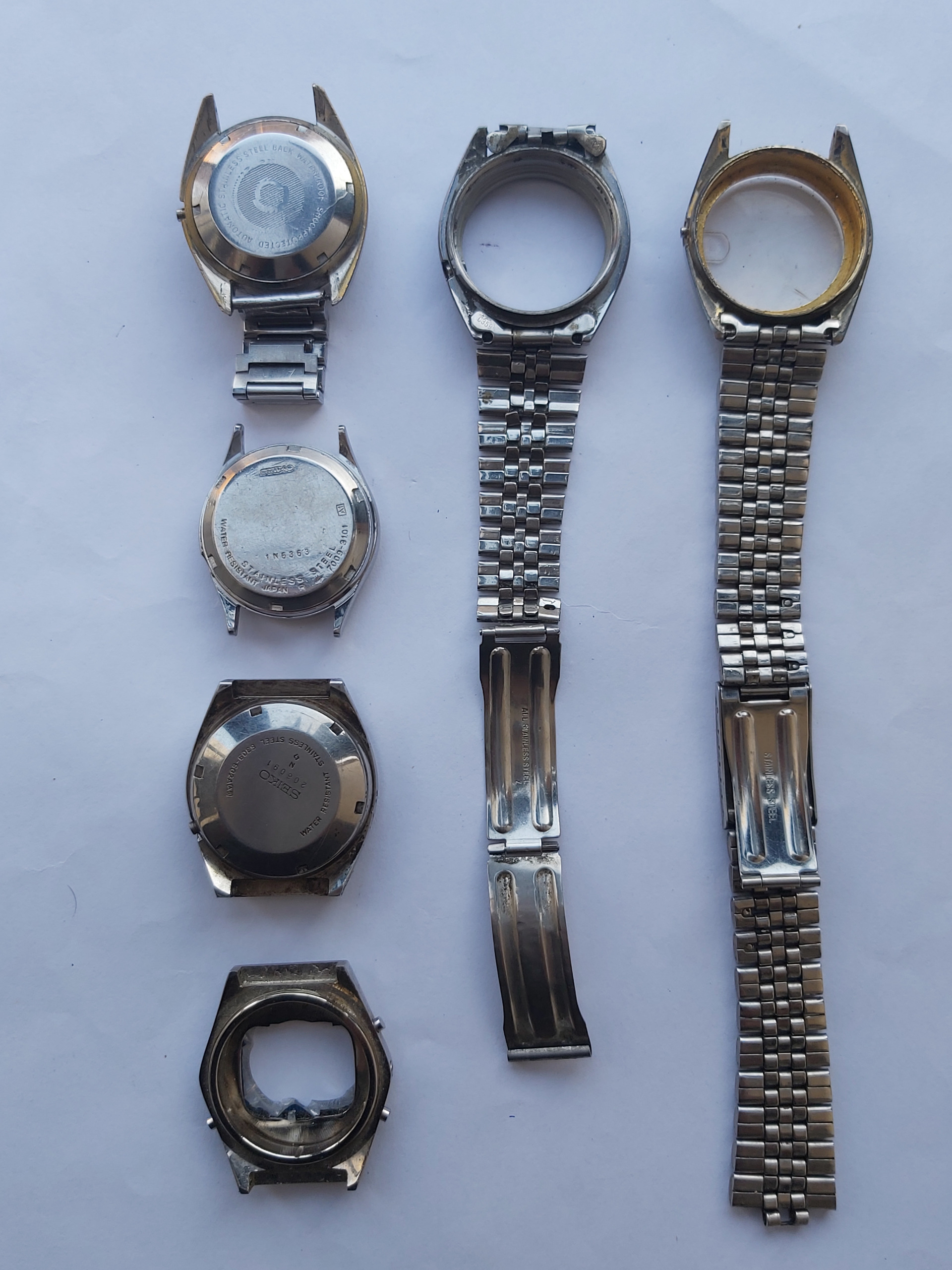 تعدادی قاب و بند ساعت نبضی و کوکی قدیمی یکی کاملا نو کیفیت مطابق تصویر سالم و بدون ایراد.