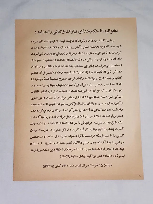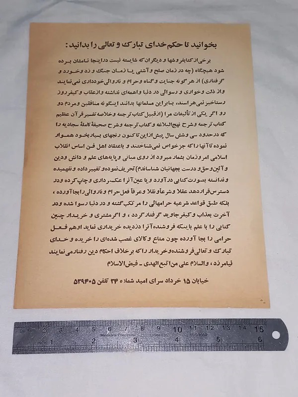 اطلاعیه قدیمی در مورد حق نشر کتاب اول انقلاب-احتمالا اواخر دهه 50