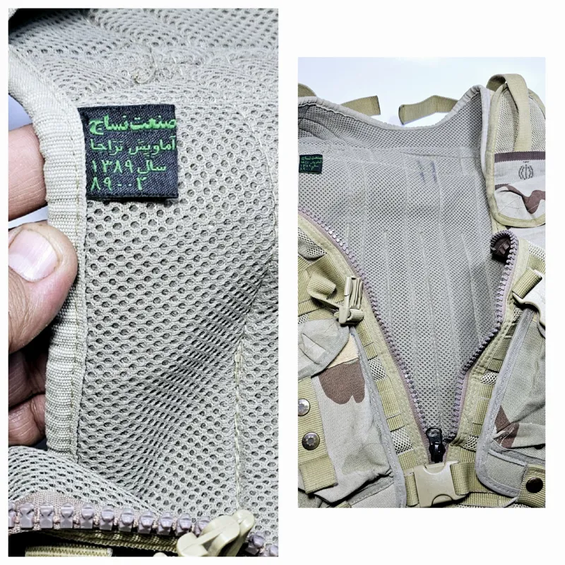جلیقه نظامی تجهیزات ارتش با کیفیت عالی تولید سال 1389 به همراه جا قمقمه ای اصلی آب که پشت جلیقه نصب شده است ، این جلیقه فری سایز میباشد و با استفاده از بند های پشت جلیقه متناسب با شما تنظیم و سایز میشود ، به علت قدمت دارای نوشته خودکاری ، خط و خش و زنگار