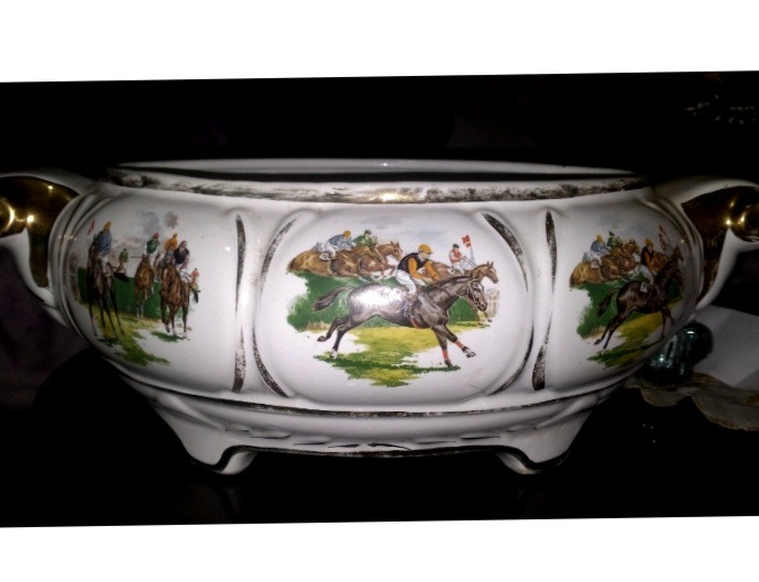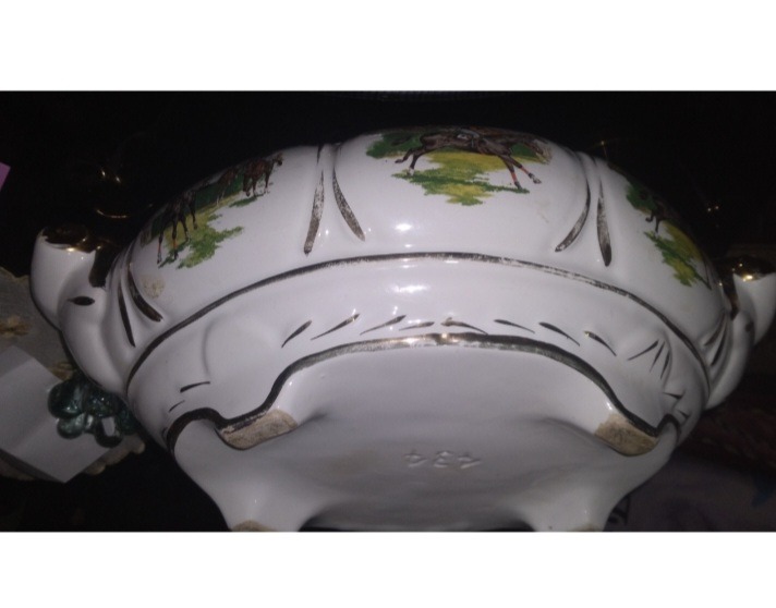 شکلات و آجیل خوری چینی دست ساز قدیمی بسیار زیبا و سالم روکش طلا . عرض دهانه 35 سانت بزرگ و جادار