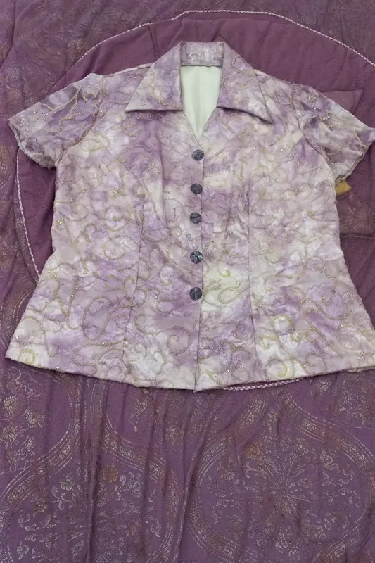 پارچه خریدم دادم مزون دوخته و فقط یکبار تن شده . سالم و تمیز هستش یک متر پارچه برده که متری 450 هزار تومان پول دادم پول خیاط به کنار