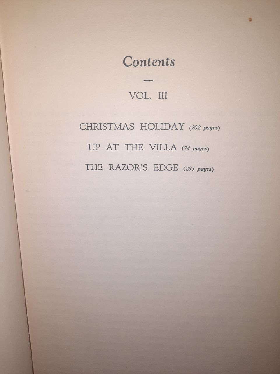 The Selected Novels of William Somerset Maugham: Chirstmas Holiday, Up at the Villa, The Razors Edge | 288 Pages | William Heinemann LTD, 1953.